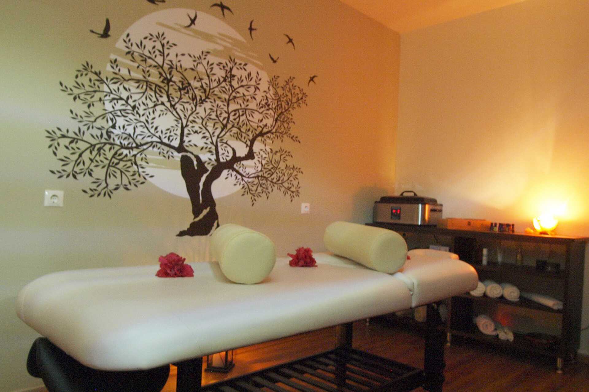 I hovedbygningen finder man receptionen og et spa med forskellige behandlinger. Et lille fitnessrum, jacuzzi, hamam og sauna er til rådighed for gæsterne mod betaling.