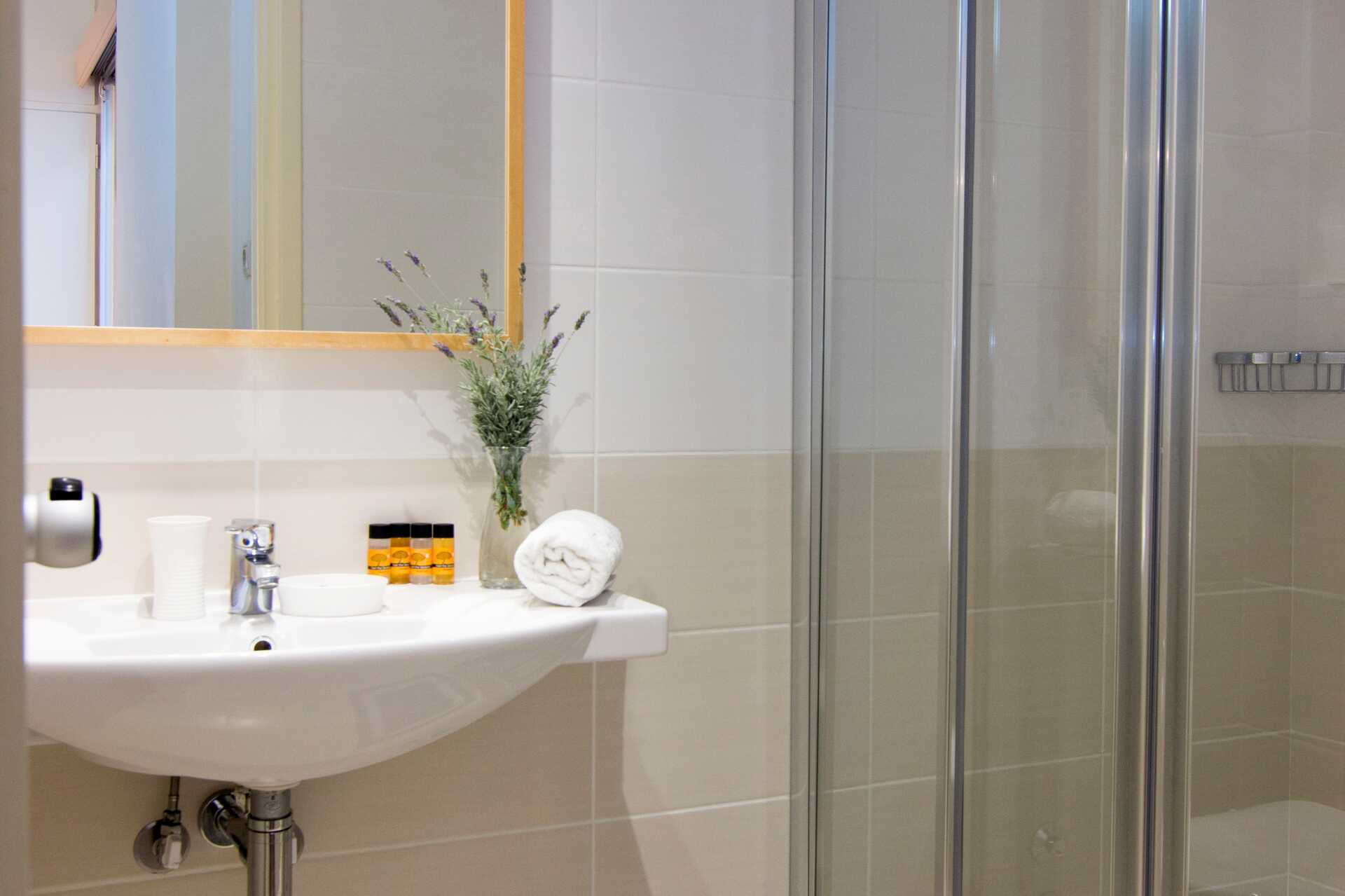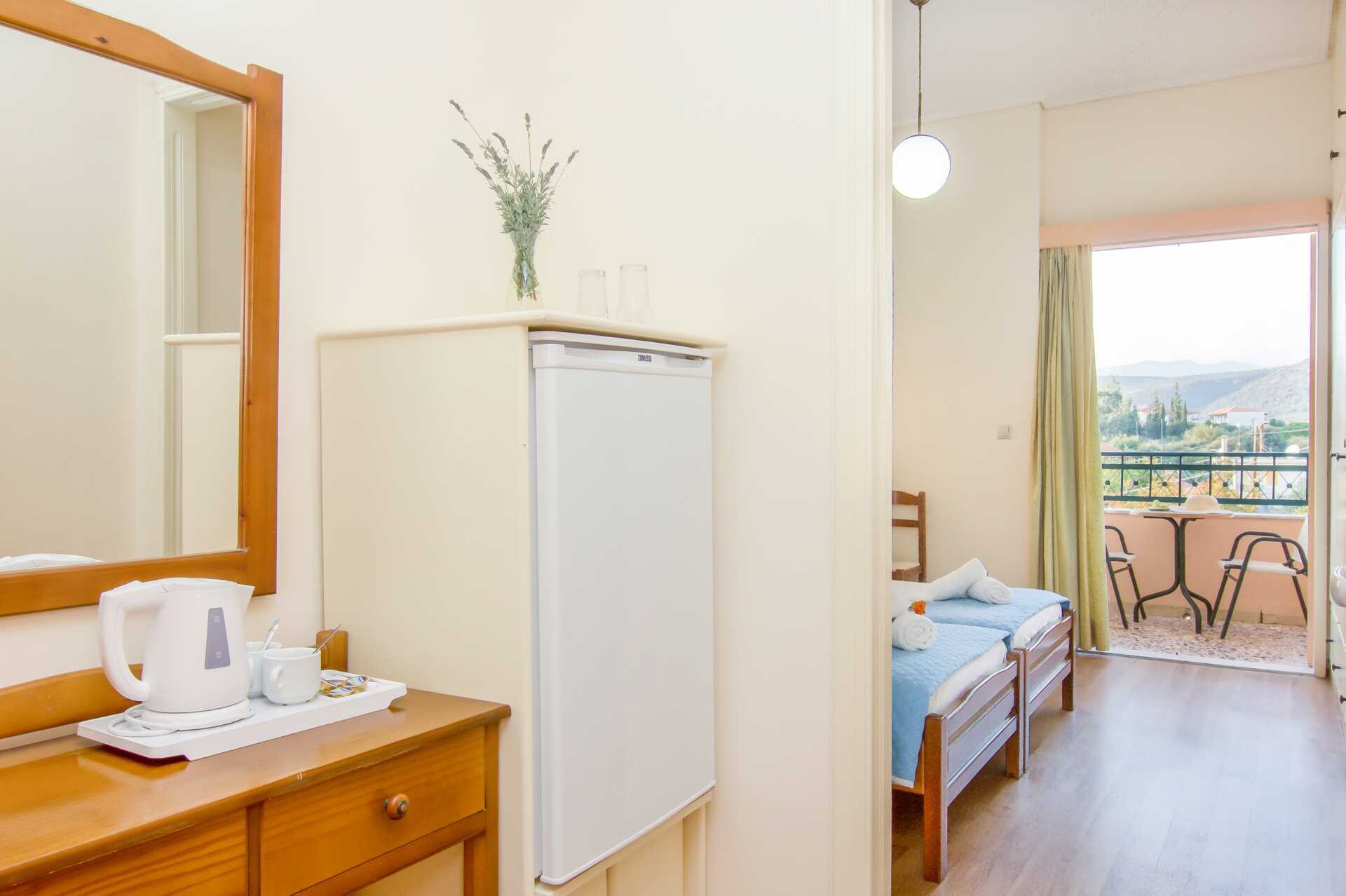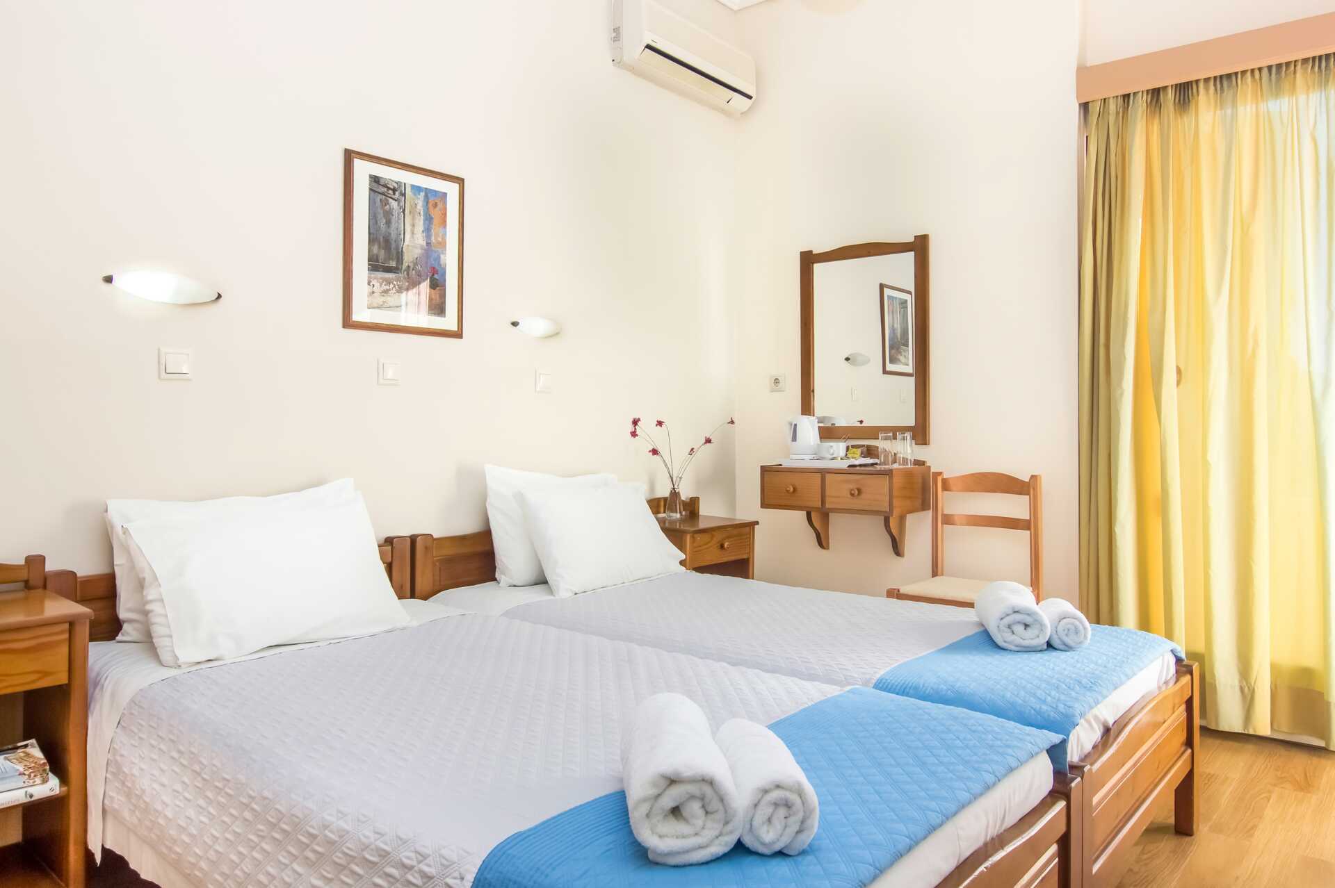 Dobbeltværelse med balkon eller terrasse. To enkeltsenge. Gratis wifi, aircondition og deponering. Køleskab. El-kedel. Tv med internationale kanaler. Hårtørrer. Badeværelse med bruser og toilet. Rengøring 7 gange om ugen.
