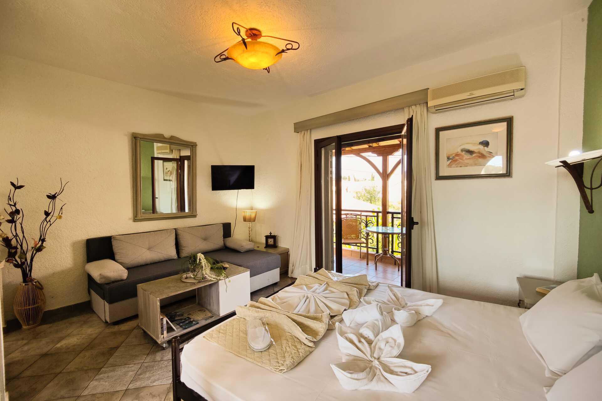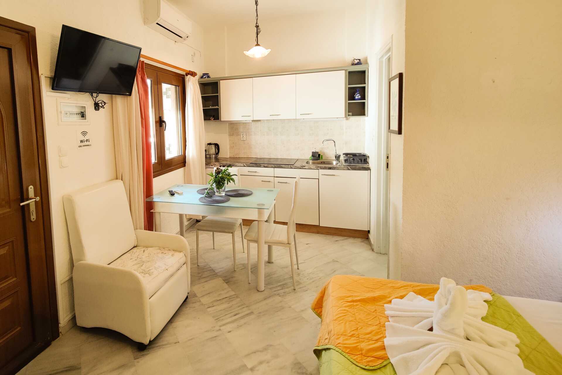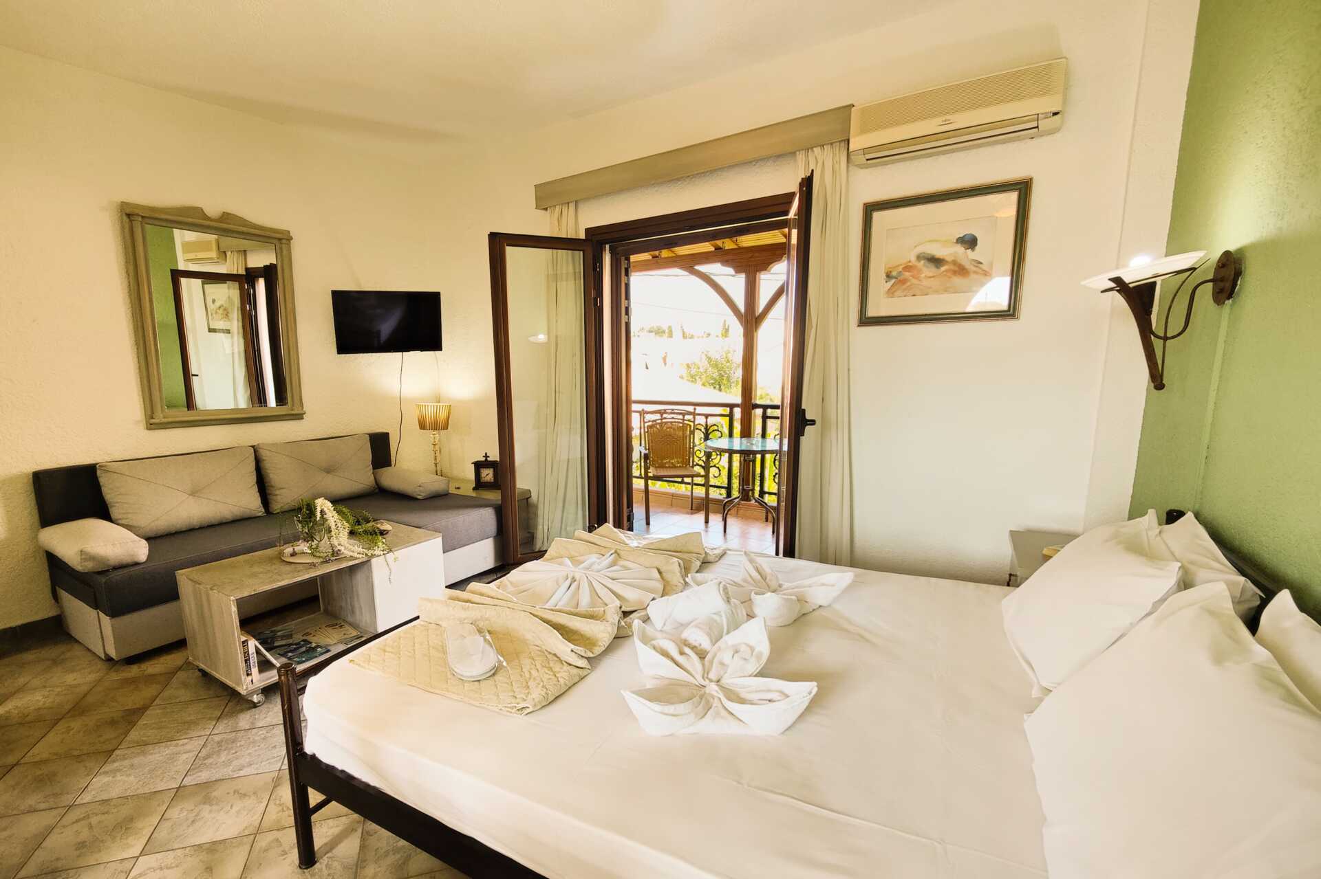 Niriides ligger lige over stranden i Stoupa, og her kan du nyde fredelige omgivelser og dejlige svømmeture i havet. Ejerne bor på hotellet og vil sørge for, at du får en dejlig ferie. Du bor i komfortable lejligheder, hvor du kan brygge din egen kaffe og nyde den på balkonen.