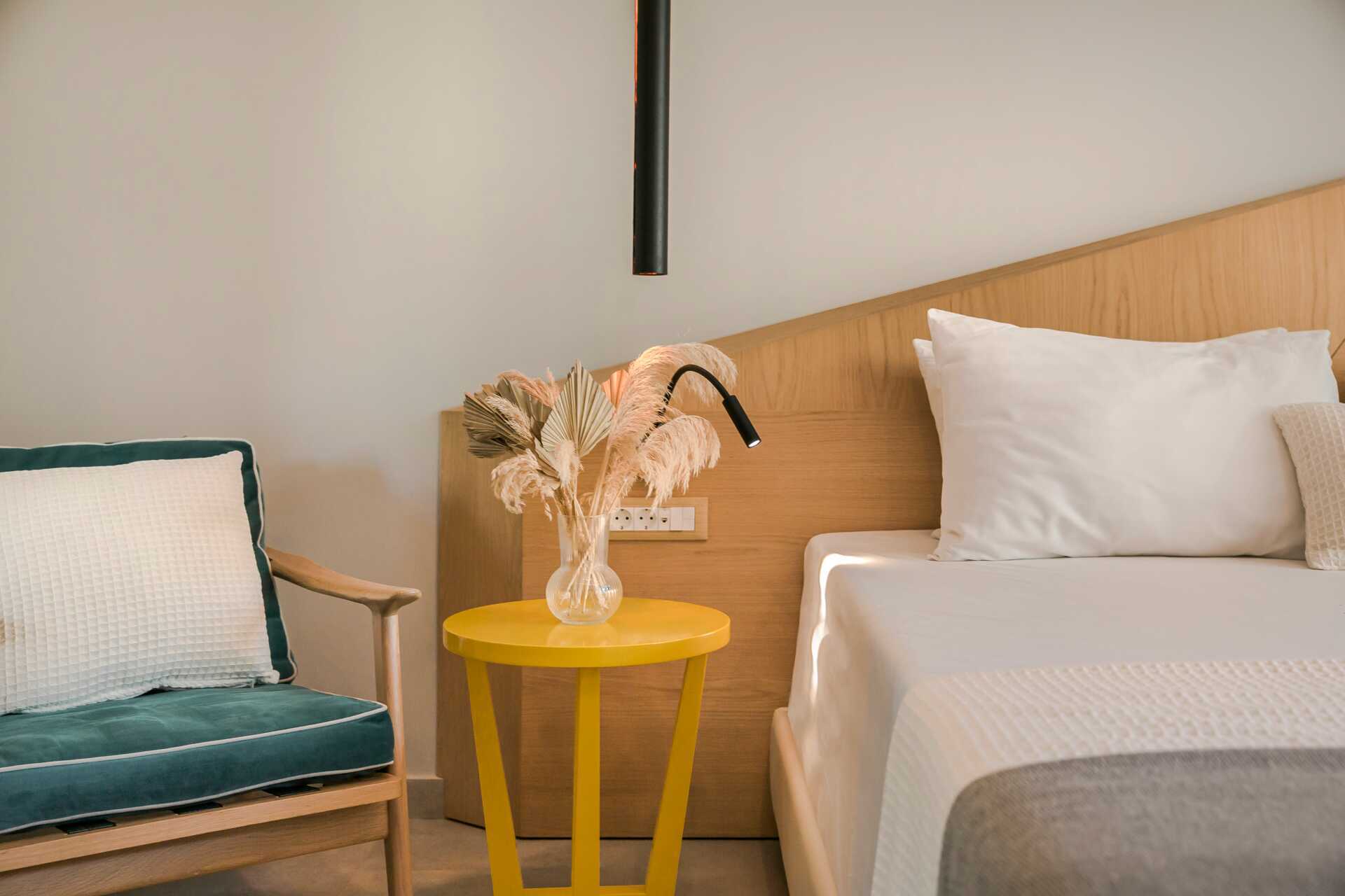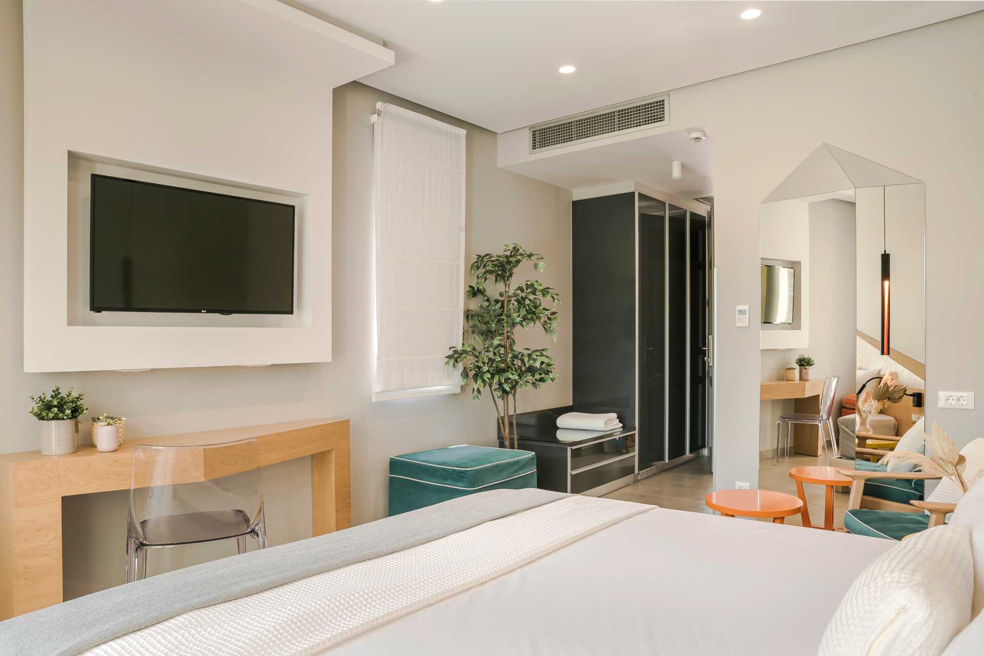 Dobbeltværelse med balkon. En dobbeltseng eller to enkeltsenge. Gratis wifi, aircondition og deponering. Køleskab. El-kedel og kaffe/te. Tv med internationale kanaler. Badekåber og tøfler. Hårtørrer. Badeværelse med bruser og toilet. Rengøring 7 gange om ugen. Børn under to år tæller med i det maksimale antal personer på værelset.