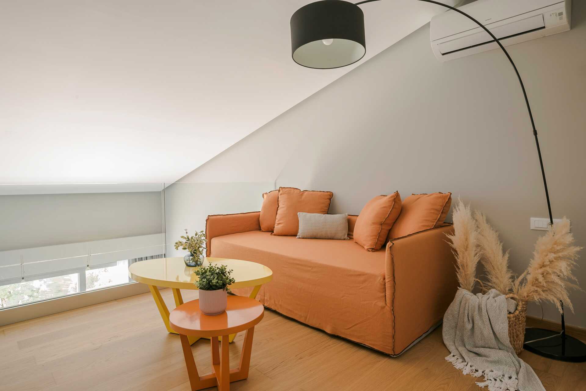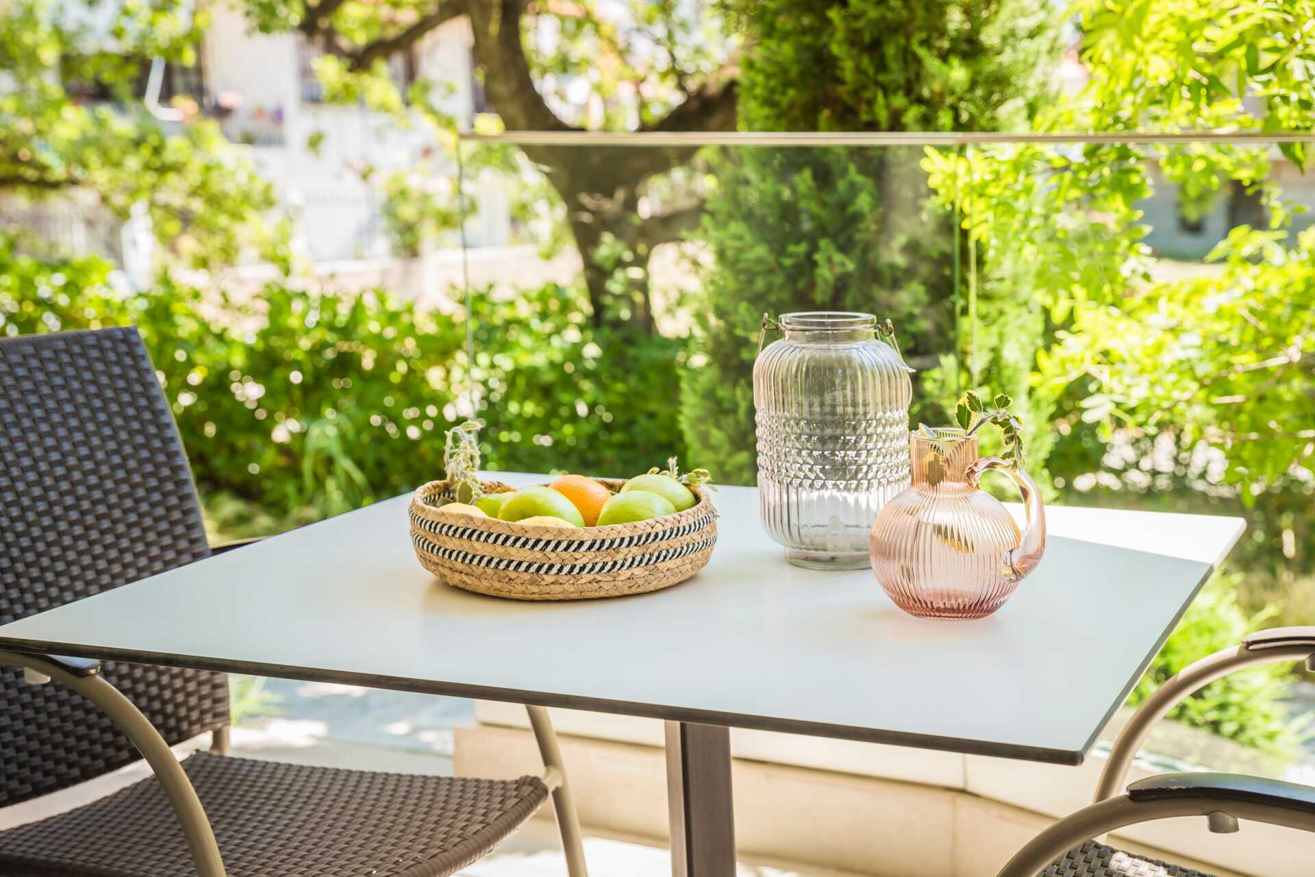 Familie-værelse i etage med balkon. En dobbeltseng i entréplan og en trappe op til hems med mulighed for ekstra sengepladser på en sovesofa. Gratis wifi, aircondition og deponering. Køleskab. El-kedel og kaffe/te. Tv med internationale kanaler. Badekåber og tøfler. Hårtørrer. Badeværelse med bruser og toilet. Rengøring 7 gange om ugen. Børn under to år tæller med i det maksimale antal personer på værelset.