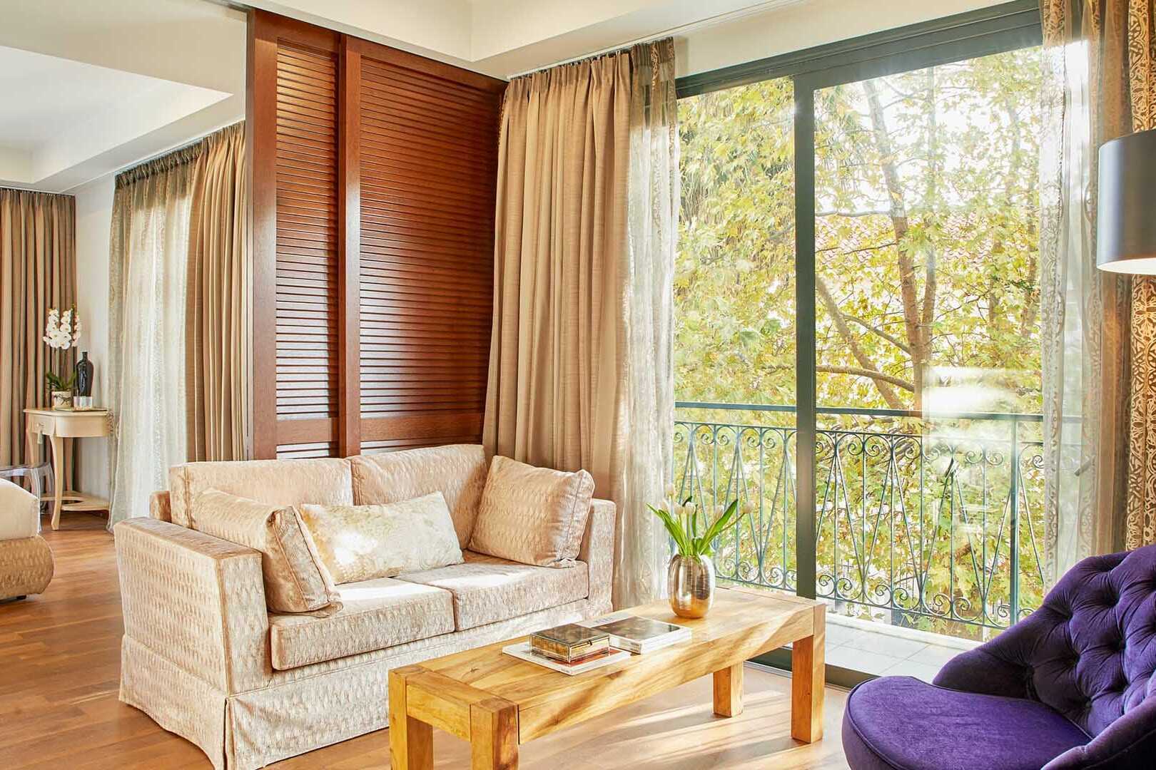 Deluxe-suite med fransk balkon. Værelset har en soveværelsesdel og en opholdsrumsdel med sovesofa. En dobbeltseng og mulighed for ekstra opredning i sovesofa. Gratis wifi, aircondition og deponering. Køleskab. Nespresso-maskine, kapsler indgår. Tv med internationale kanaler. Hårtørrer. Tøfler. Badeværelse med bruser og toilet. Rengøring 7 gange om ugen. Børn under to år tæller med i det maksimale antal personer på værelset.