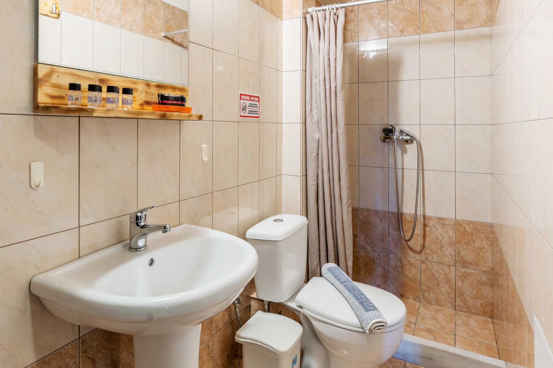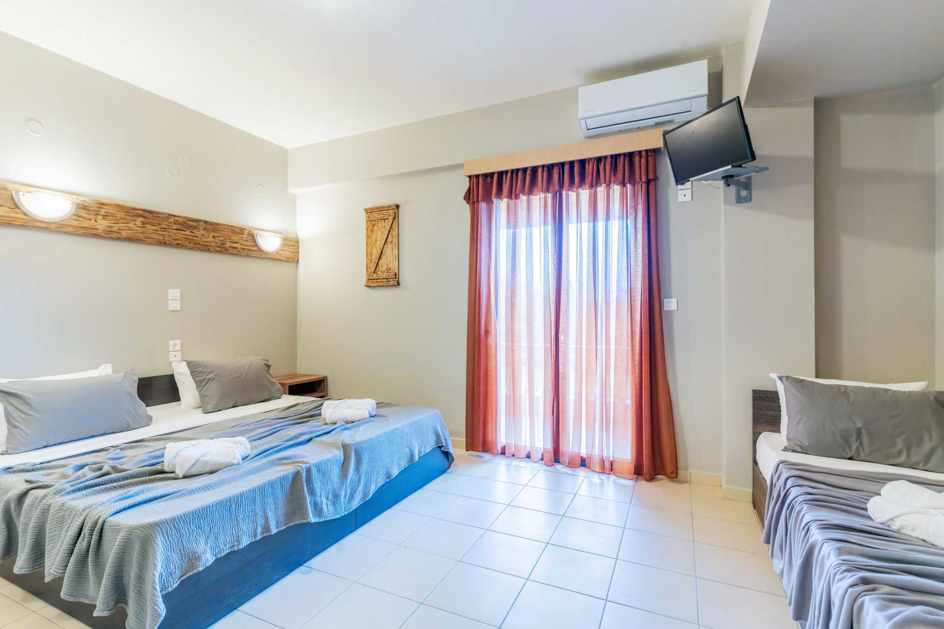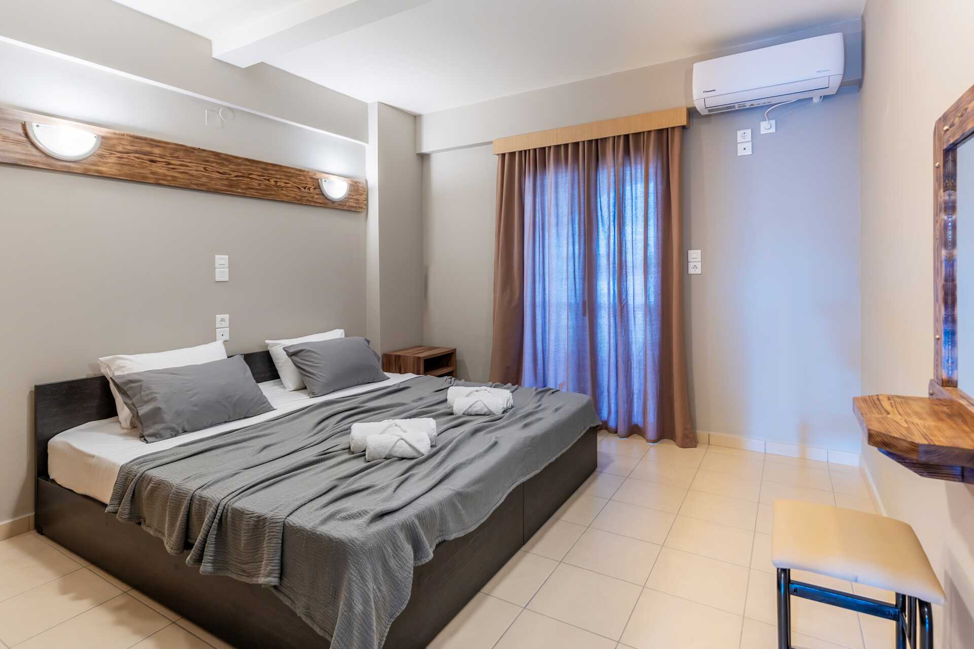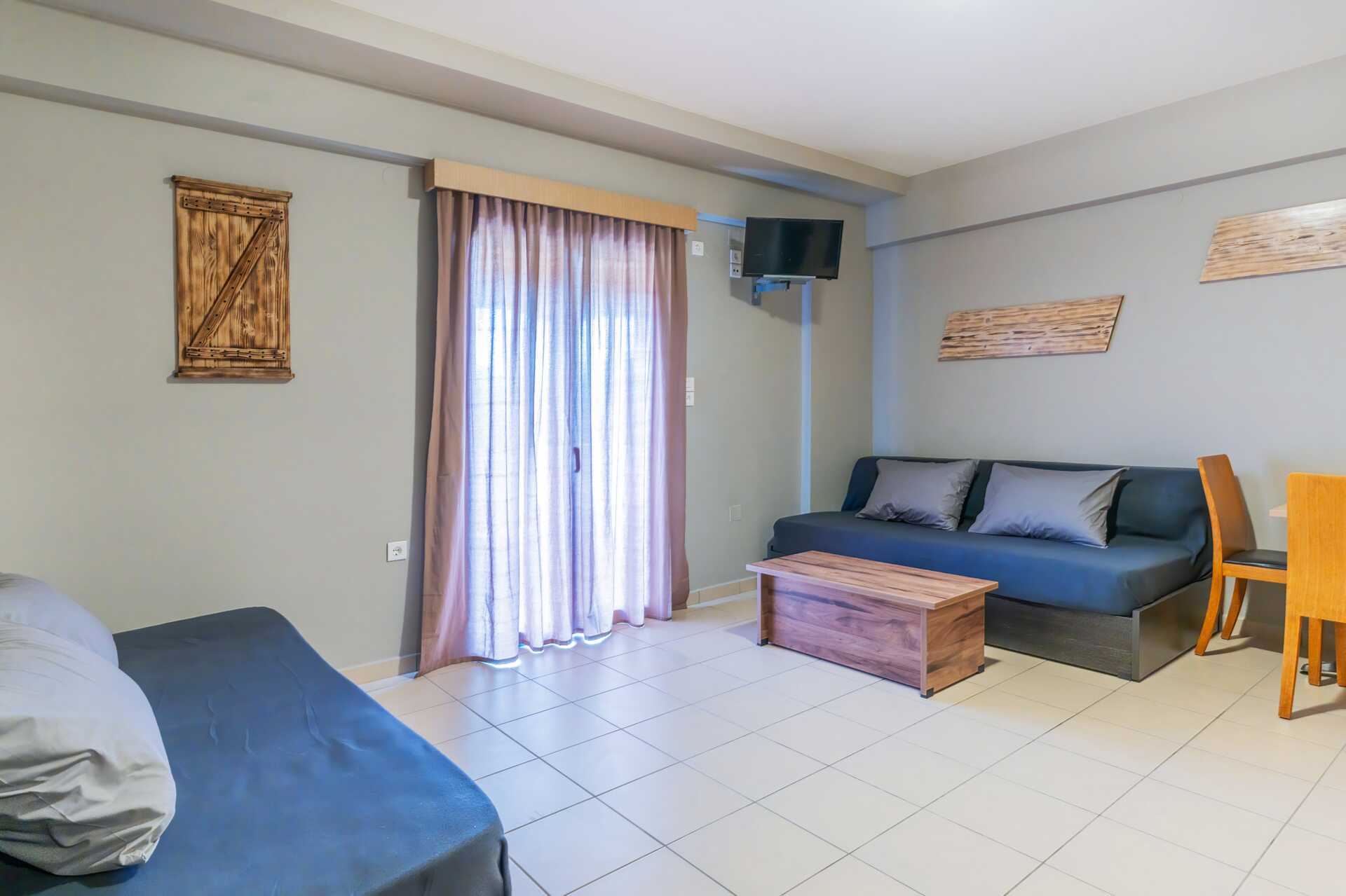 1-værelses lejligheder med balkon. Soveværelse med kombineret minikøkken. En dobbeltseng eller to enkeltsenge. Mulighed for ekstra opredning i enkeltseng. Minikøkken med køleskab, kogeplader, el-kedel og enkelt køkkenudstyr. Gratis wifi, aircondition og deponering. Tv med lokale kanaler. Hårtørrer. Badeværelse med bruser og toilet. Rengøring 5 gange om ugen.