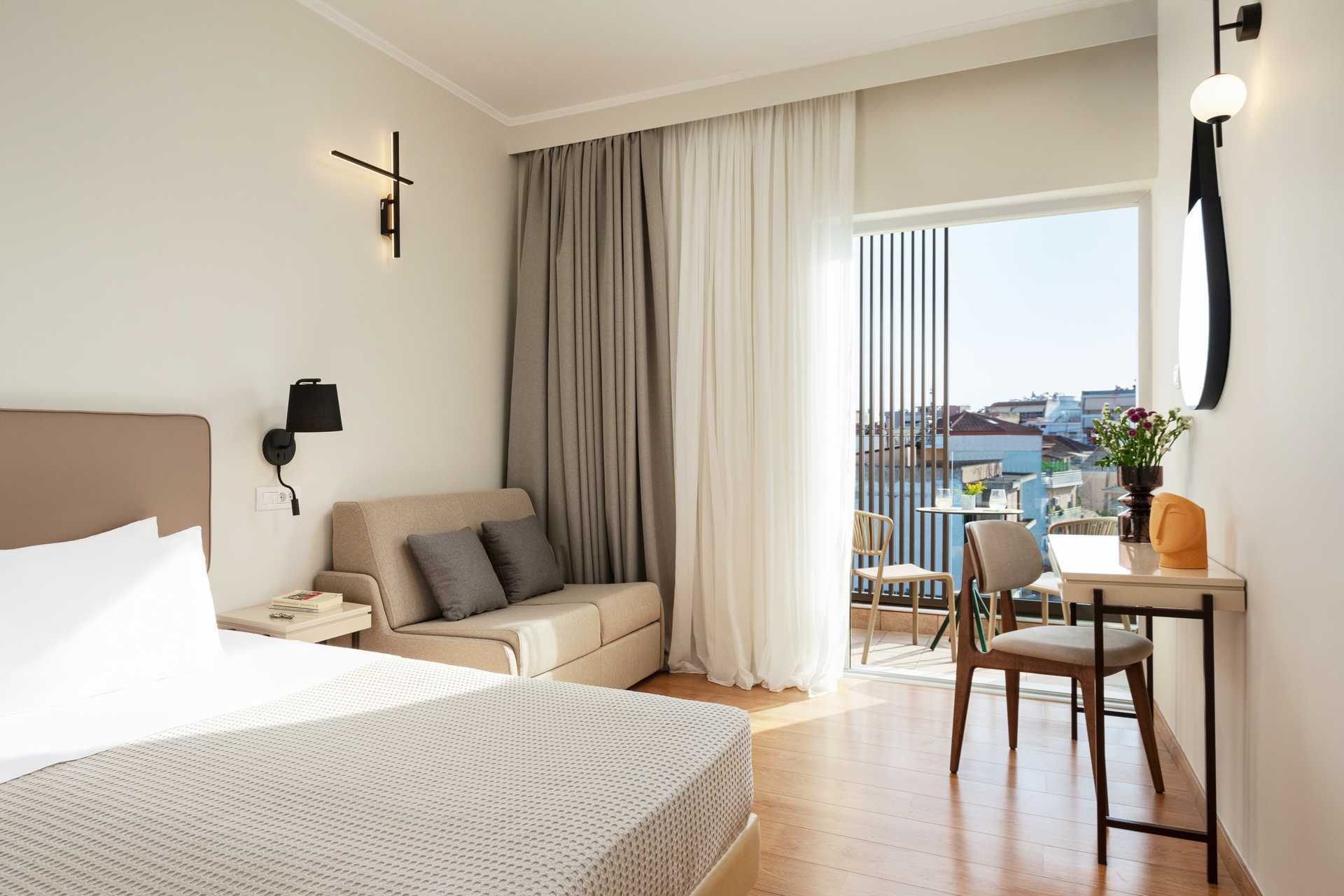 Superior-værelse med balkon. En dobbeltseng eller to enkeltsenge. Mulighed for ekstra opredninger i sovesofa. Gratis wifi, aircondition og deponering. Køleskab. Tv med internationale kanaler. Hårtørrer. Badeværelse med bruser og toilet. Rengøring 7 gange om ugen.