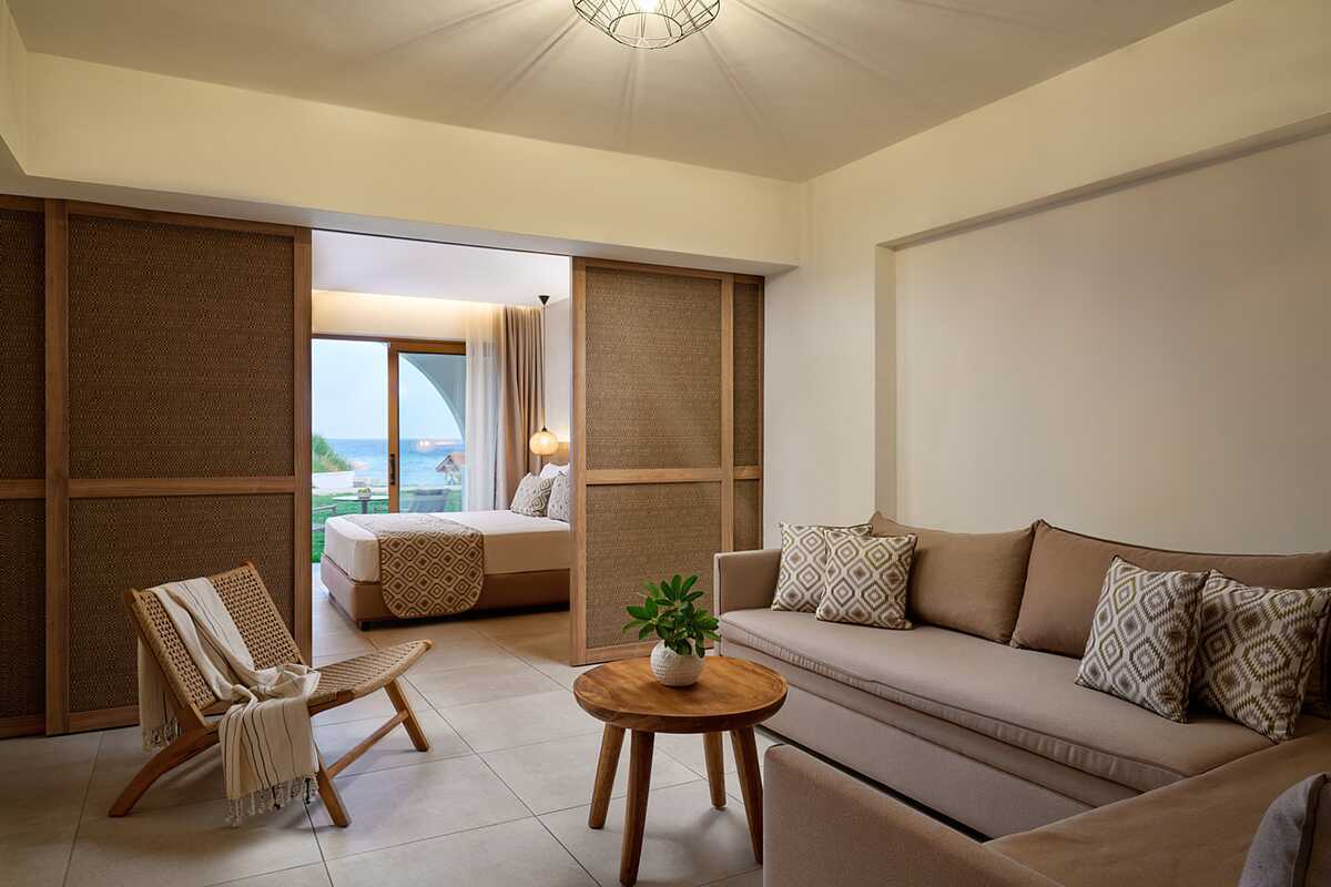 Dobbeltværelse med terrasse og udgang til privat pool. Stige ned i poolen. Aldersgrænsen for ophold i disse værelser er 16 år. En dobbeltseng eller to enkeltsenge. Gratis wifi, aircondition og deponering. Køleskab. El-kedel. Tv med internationale kanaler. Hårtørrer. Badeværelse med bruser og toilet. Rengøring 7 gange om ugen.