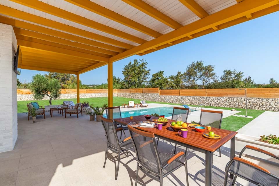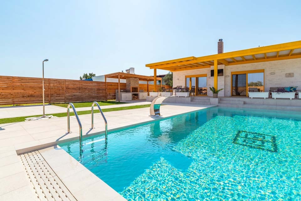 Din klare blå private pool glitrer i solen og venter bare på, at du hopper direkte i den. Læn dig tilbage og slå et par længder om morgenen, eller hav det sjovt med dine nærmeste. Beliggende midt på en enorm terrasse og græsplæne, vil denne villas udendørsområde virkelig være dit centrum for underholdning.