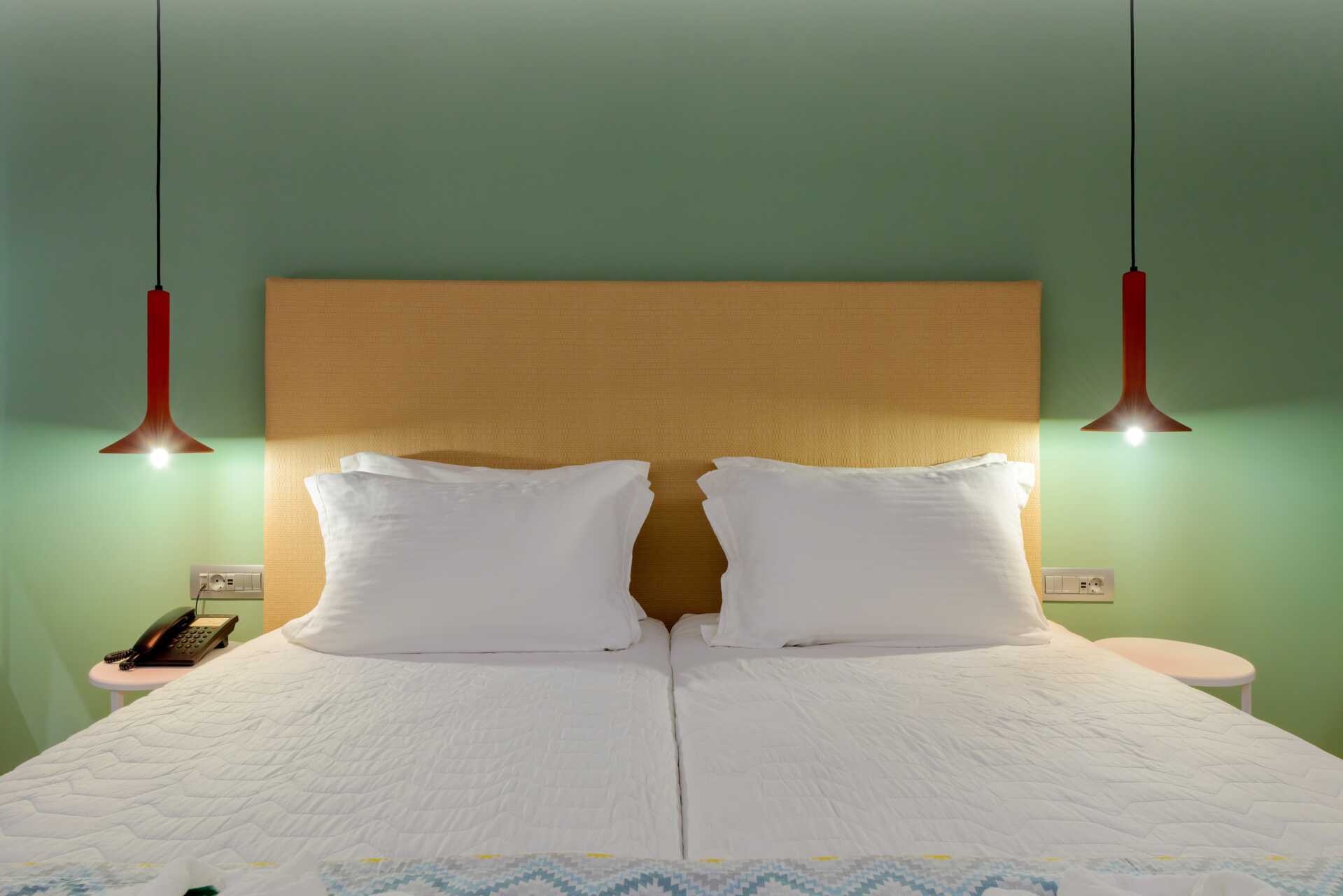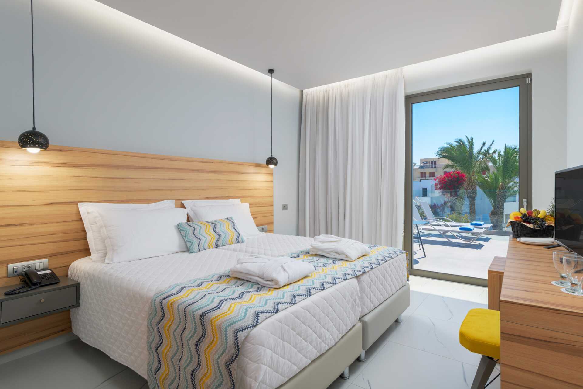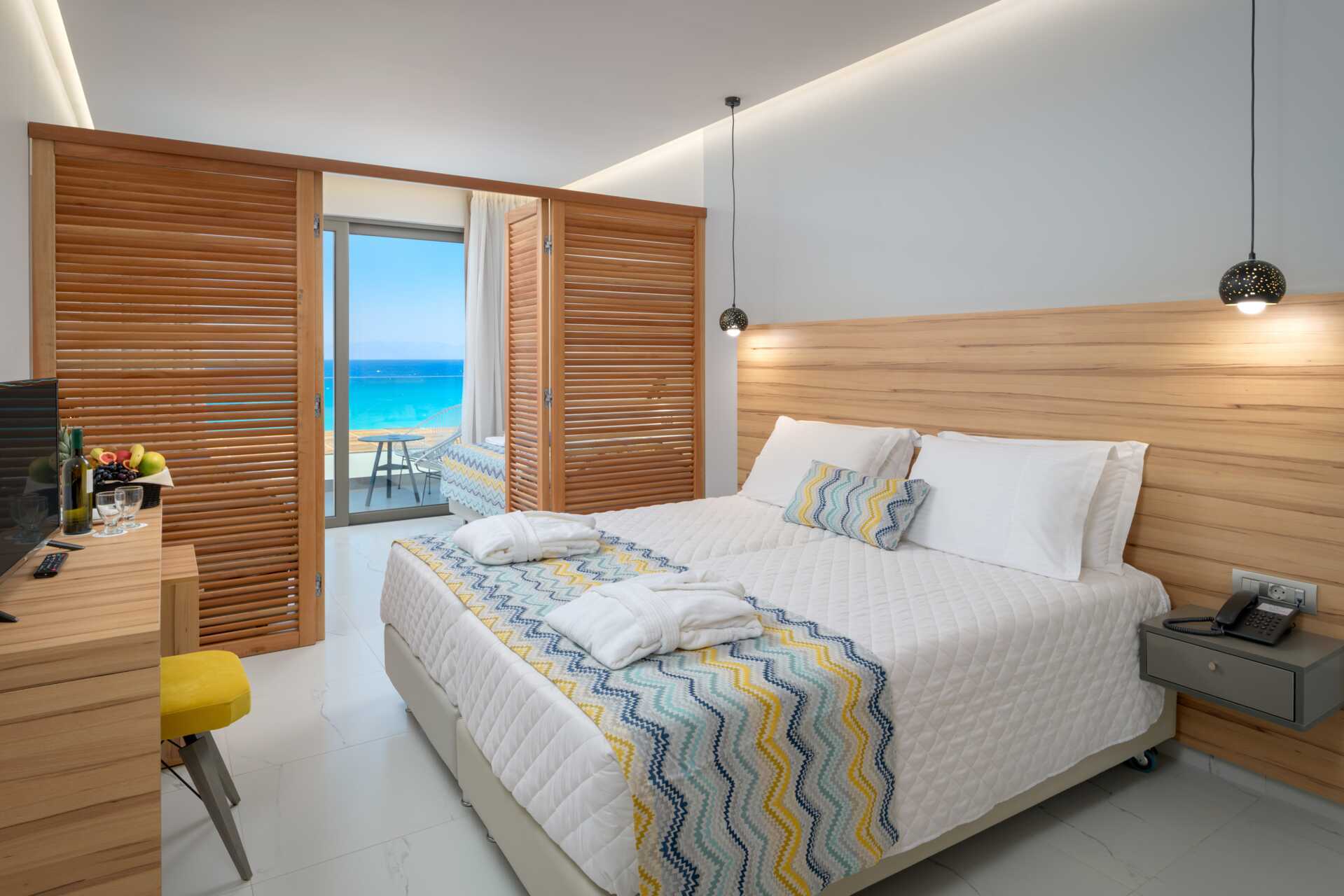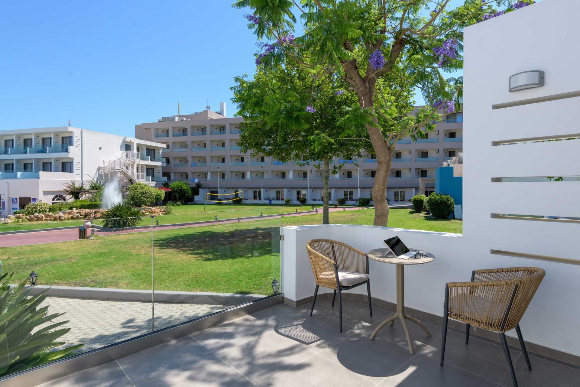 Familie-værelser superior med balkon eller terrasse, nogle med havudsigt. Rummet er opdelt med skydedøre. En dobbeltseng eller to enkeltsenge. Mulighed for ekstra opredning to enkeltsenge. Gratis wifi og aircondition. Deponering mod betaling. Køleskab. Tv med internationale kanaler. Hårtørrer. Badeværelse med bruser og toilet. Rengøring 7 gange om ugen.