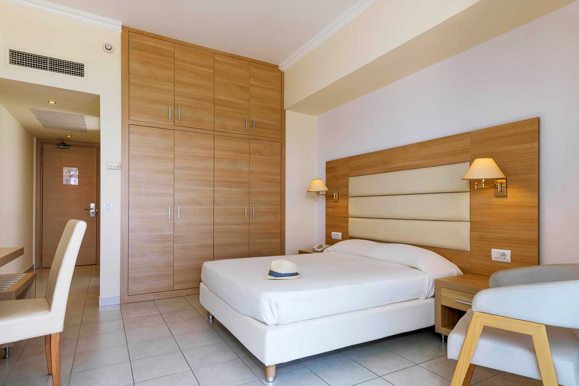 Dobbeltværelser med balkon, nogle med havudsigt. En dobbeltseng eller to enkeltsenge. Mulighed for ekstra opredning i fold ud-seng. Gratis wifi og aircondition. Aircondition er tilgængeligt i juni-september. Deponering mod betaling. Køleskab. El-kedel og kaffe/te. Tv med internationale kanaler. Hårtørrer. Badeværelse med badekar og toilet. Rengøring 6 gange om ugen.