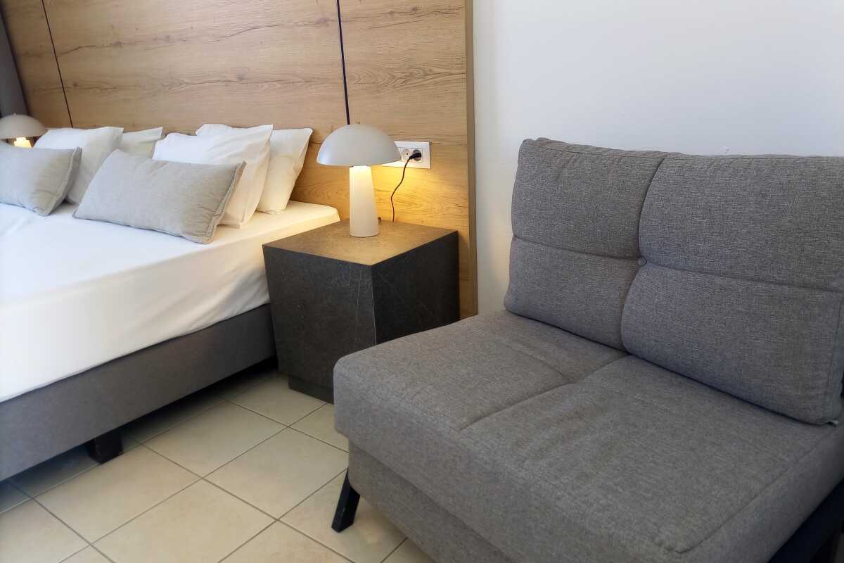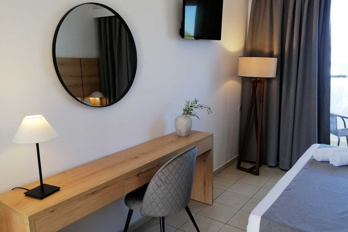 Dobbeltværelse, renoveret med balkon og delvis havudsigt. En dobbeltseng eller to enkeltsenge. Mulighed for ekstra opredning i fold ud-stol. Gratis wifi og aircondition. Deponering mod betaling. Køleskab. El-kedel og kaffe/te. Tv med internationale kanaler. Hårtørrer. Badeværelse med bruser og toilet. Rengøring 7 gange om ugen.