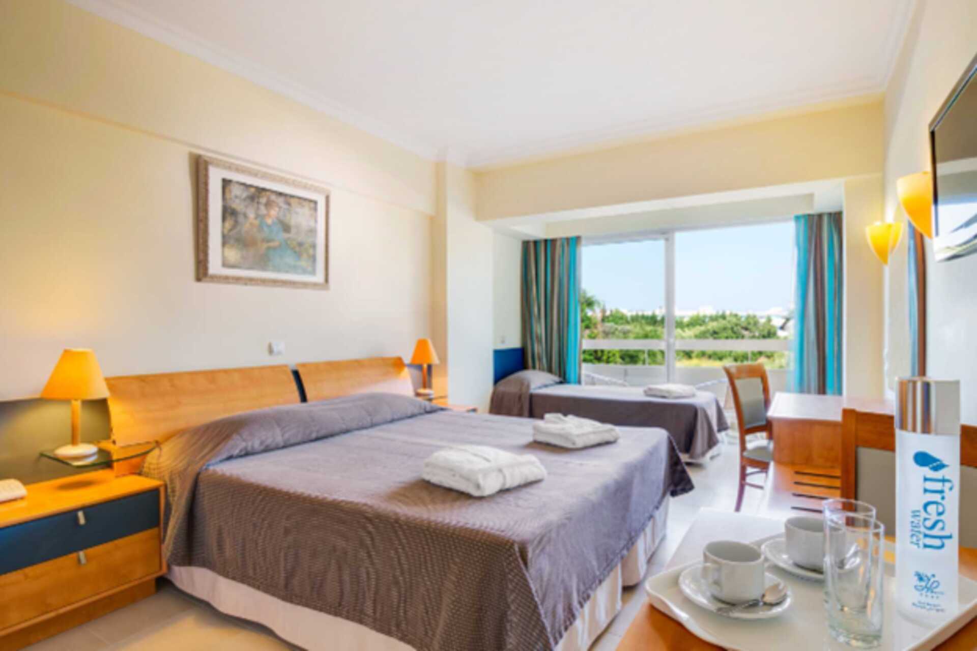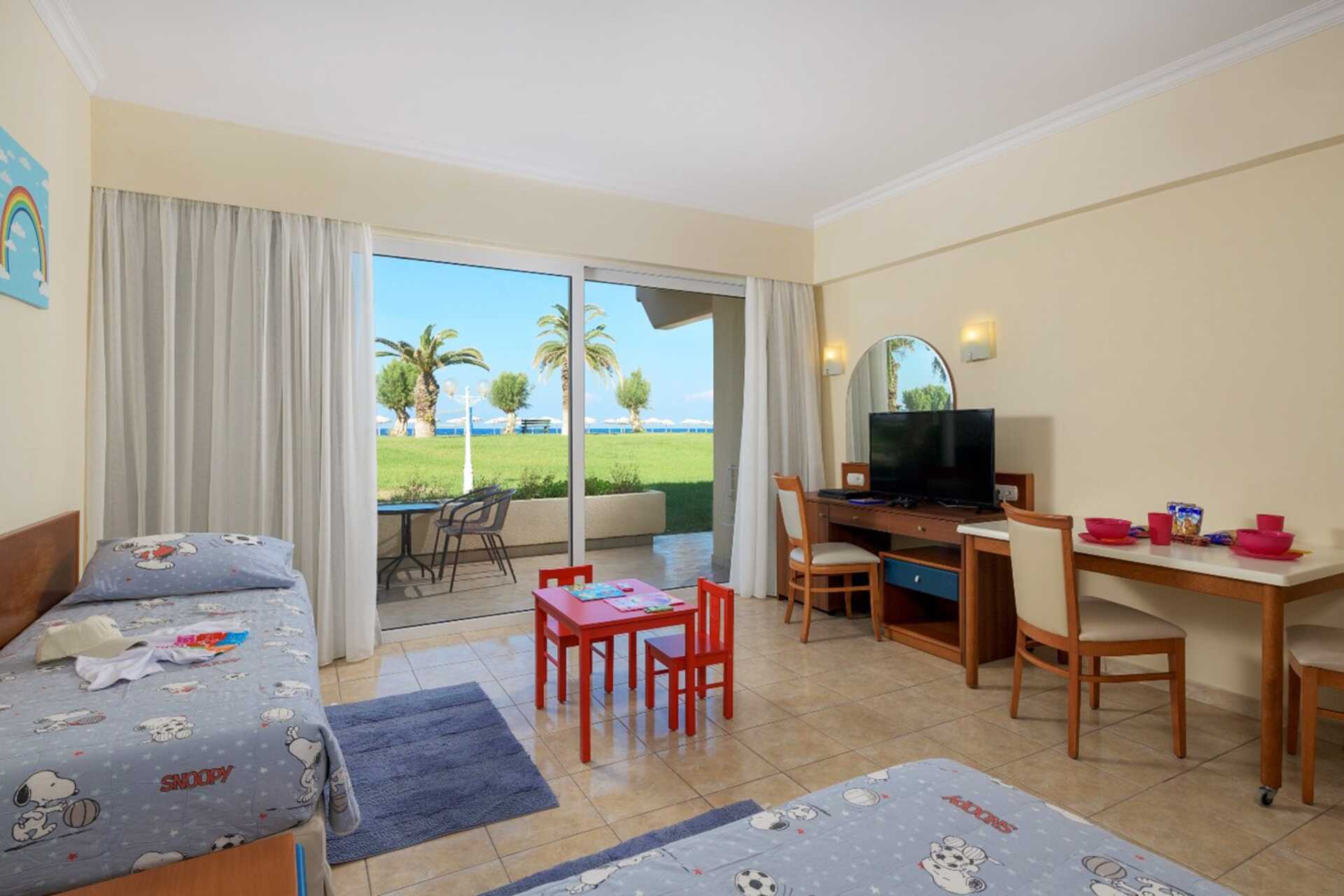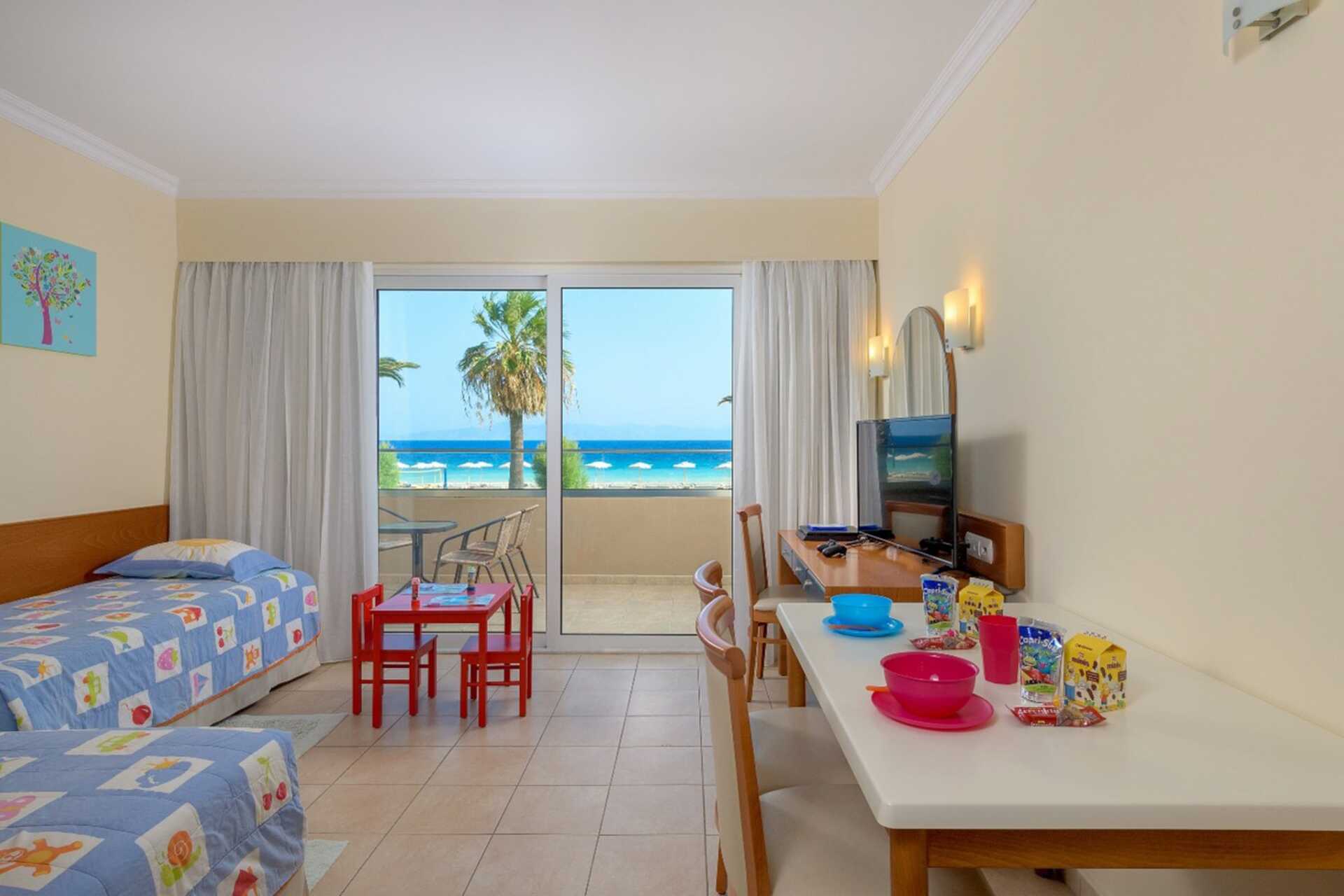 Familie-værelser med balkon. Værelserne ligger i hoteldelen Garden Wing, Zeus og Hera. To enkeltsenge. Mulighed for ekstra opredning i enkeltseng eller en fold-ud. Gratis wifi og aircondition. Aircondition er centralt styret døgnet rundt af hotellet i juni til september. Deponering mod betaling. Køleskab. El-kedel samt kaffe/te. Tv med internationale kanaler. Hårtørrer. Badeværelse med badekar med bruser samt toilet. rengøring 7 gange om ugen. Børn under to år tæller med i det maksimale antal personer i lokalet.