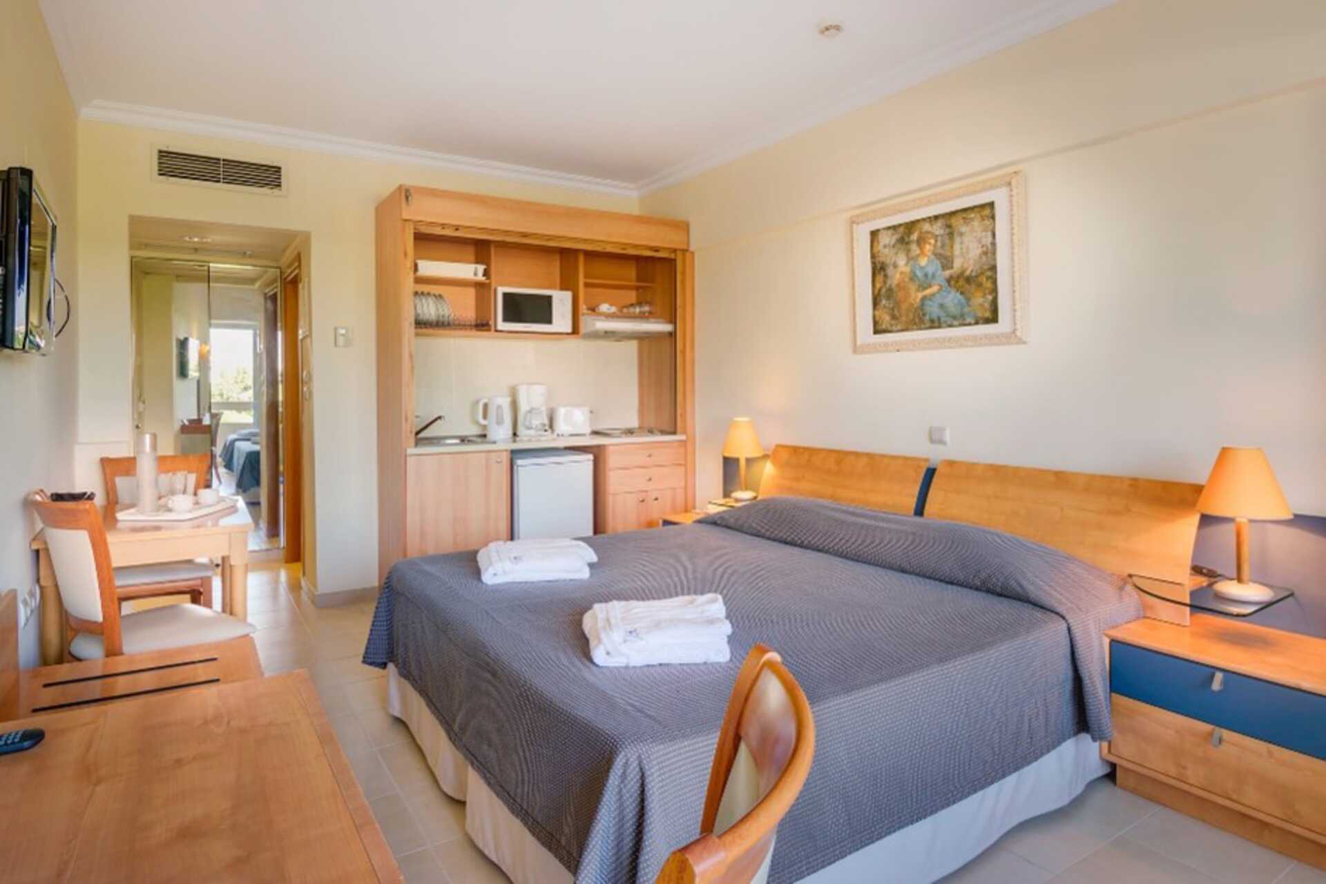 1-værelses lejlighed med balkon, nogle med havudsigt. Lejlighederne er beliggende i hotelafdelingerne Garden Wing, Zeus og Hera. Soveværelse kombineret med minikøkken. To enkeltsenge. Mulighed for ekstra opredning i enkeltseng. Minikøkken med køleskab, kogeplader, mikroovn, kaffemaskine, brødrister, el-kedel og enkelt køkkenudstyr. Gratis wifi og aircondition. Aircondition er centralt styret døgnet rundt af hotellet fra juni til september. Deponering mod betaling. Tv med internationale kanaler. Hårtørrer. Badeværelse med badekar og toilet. Rengøring 7 gange om ugen. Børn under to år tæller med i det maksimale antal personer på værelset.