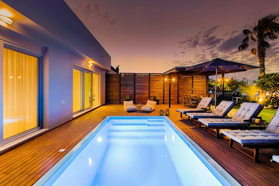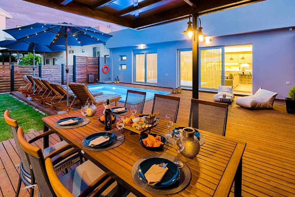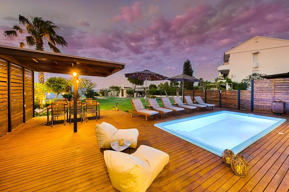 Bemærk venligst, at selvom poolterrassen er privat, deles græsområdet bagved og adgangen til stranden med naboejendommen.