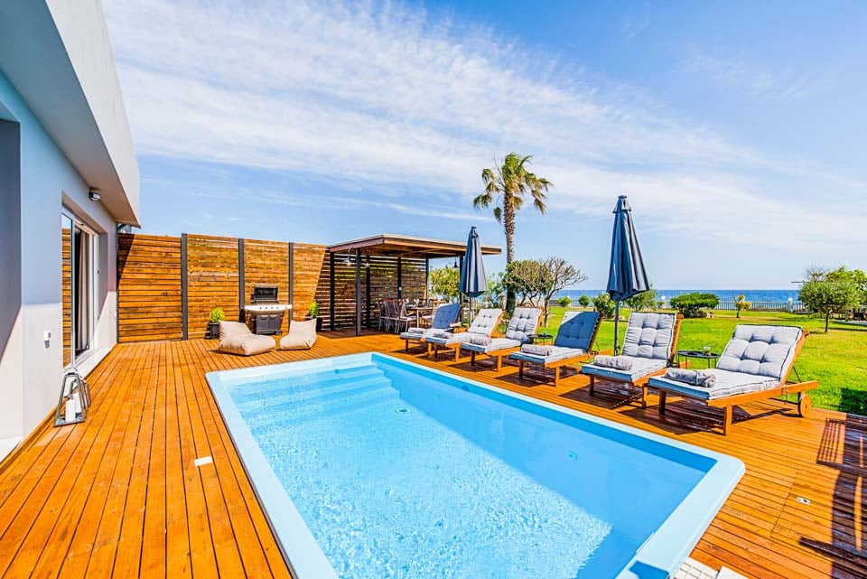 Beliggende over Ialysos-stranden med sin pletfri pool ligger denne skjulte perle af en ejendom, Villa Nastazia, med sit unikke interiør og spektakulære, uforstyrrede udsigt!