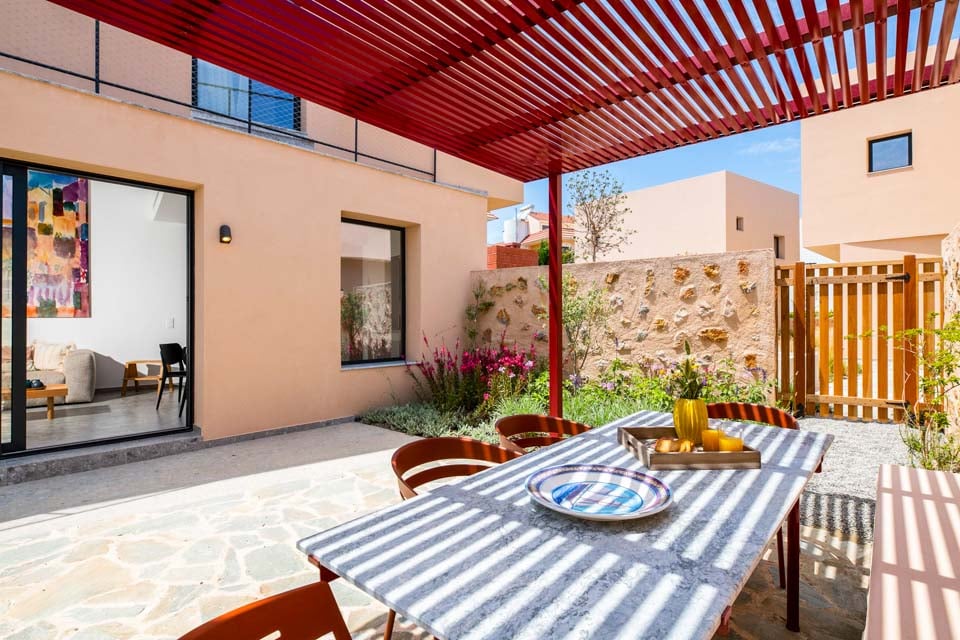 Nisi Concept-villaerne er et unikt villakompleks designet til at efterligne en lille landsby i Rhodos, hvor "landsbytorvet" er en central gårdhave med spisemuligheder i taverna-stil og udendørs grill. Derudover har komplekset et fælles fitnessrum, der er tilgængeligt fra 2024 (tilgængeligt med elevator eller en trappe til kælderen) og et fælles vaskerum. Alle villaer (undtagen Villa Nisi Chalki) tilbyder parkeringskælder til én bil under komplekset med direkte adgang via trapper direkte til din villa. Yderligere biler skal parkeres på gaden.