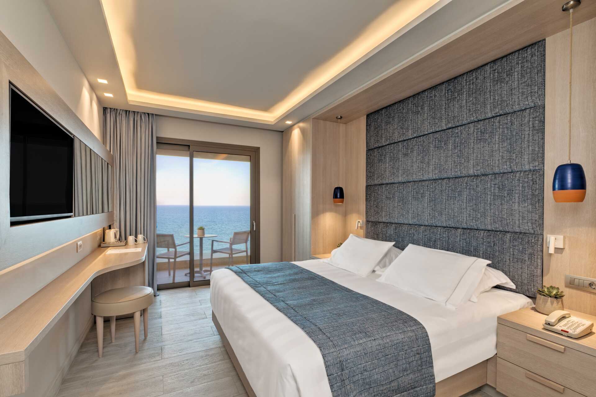 Deluxe-værelser med balkon eller terrasse og havudsigt. Dobbeltseng. Mulighed for ekstra opredning i sovesofa. Gratis wifi, aircondition og deponering. Køleskab. El-kedel og kaffe/te. Tv med internationale kanaler. Badekåber og tøfler. Hårtørrer. Badeværelse med badekar og toilet. Rengøring 7 gange om ugen.
