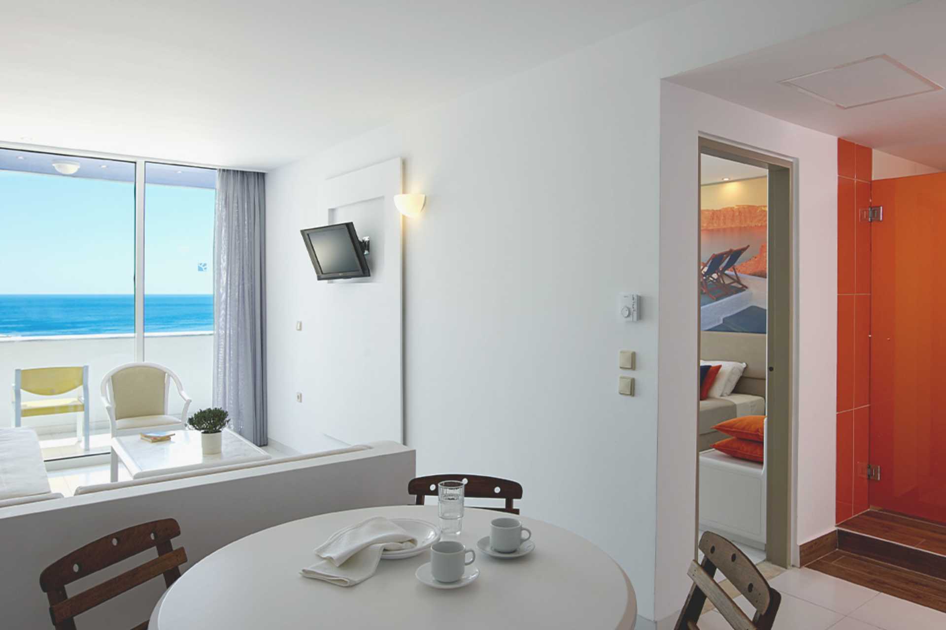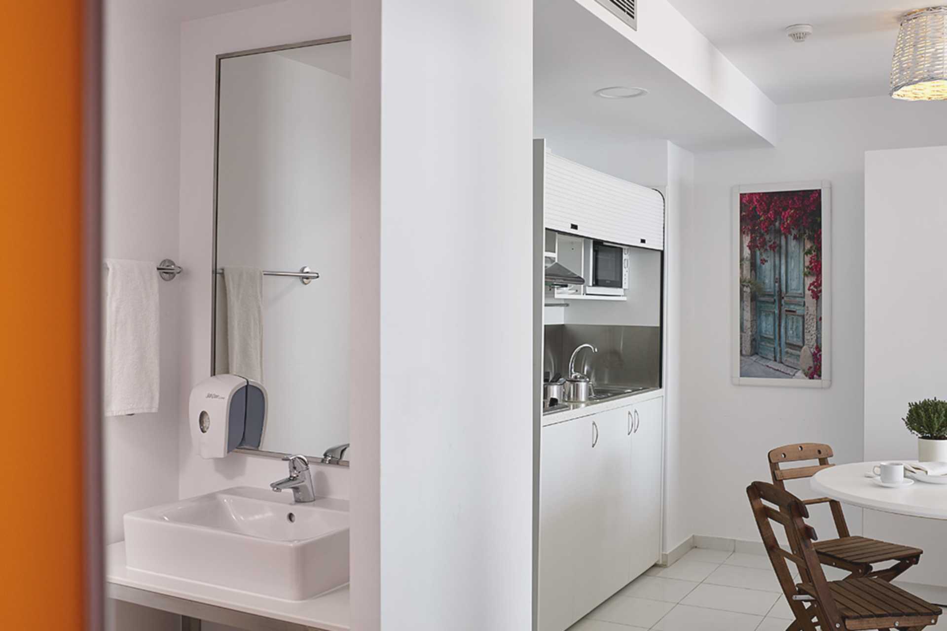 2-værelses lejlighed med balkon, nogle med delvis havudsigt eller med havudsigt. Et soveværelse og et kombineret opholdsrum med minikøkken. To enkeltsenge. Mulighed for ekstra opredninger i sovesofa. Wifi, aircondition (i perioden 1/6–15/9) og deponering inkluderet. Central aircondition, der reguleres i lejligheden.Minikøkken med køleskab, kogeplader, mikrobølgeovn i nogle lejligheder, el-kedel og enkelt køkkenudstyr. Tv med internationale kanaler. Hårtørrer. Badeværelse med badekar eller bruser samt toilet. Rengøring 6 gange om ugen.