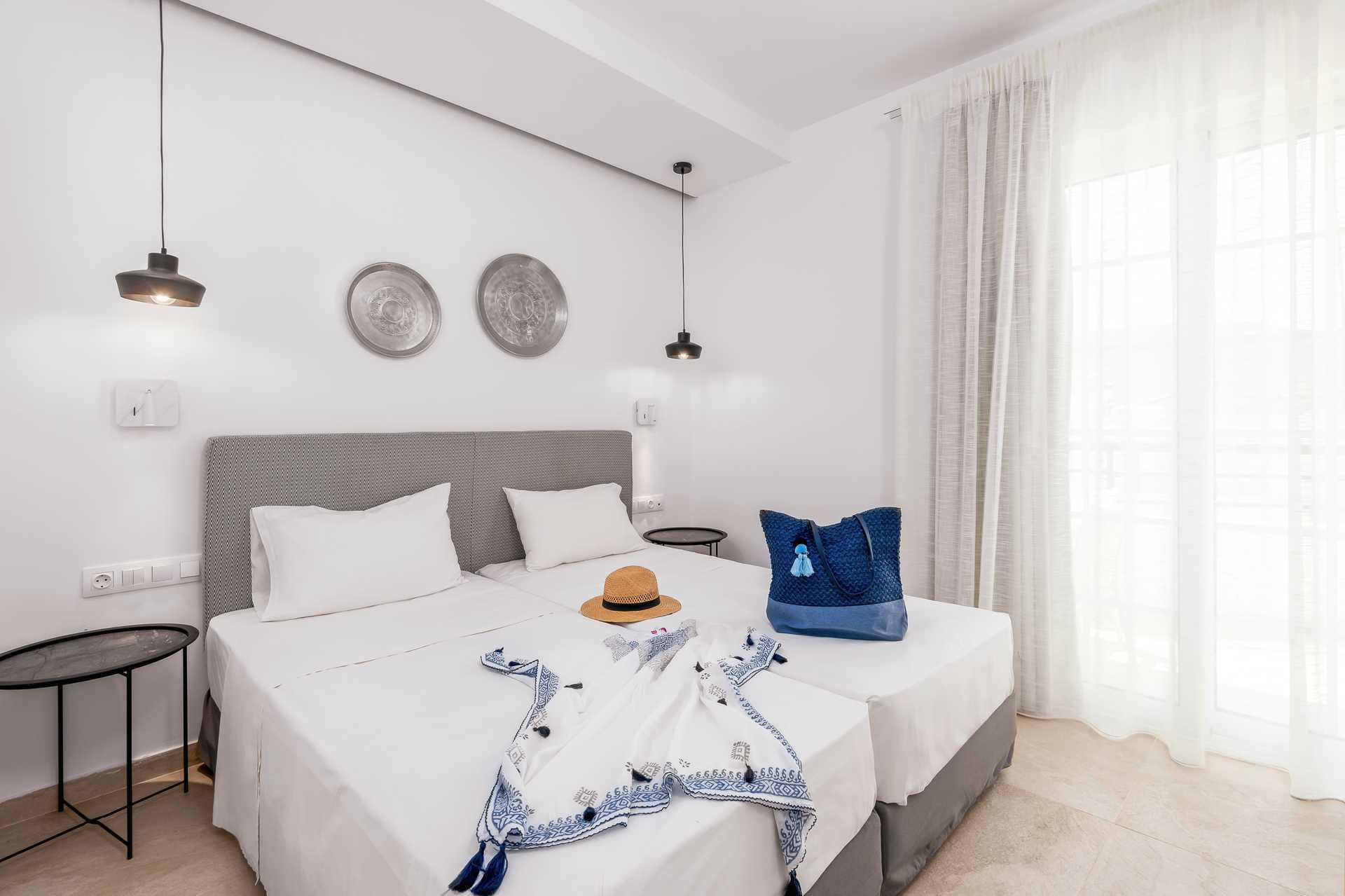 Mindre 2-værelses lejlighed med balkon eller balkon i stueplan. Soveværelse og kombineret opholdsrum med minikøkken med varierende indretning. En dobbeltseng eller to enkeltsenge. Mulighed for ekstra opredning i sovesofa. Minikøkken med kogeplader, køleskab, mikroovn, brødrister, el-kedel og enkelt køkkenudstyr. Gratis wifi, aircondition og deponering. Tv med lokale kanaler. Hårtørrer. Badeværelse med bruser og toilet. Rengøring 6 gange om ugen.