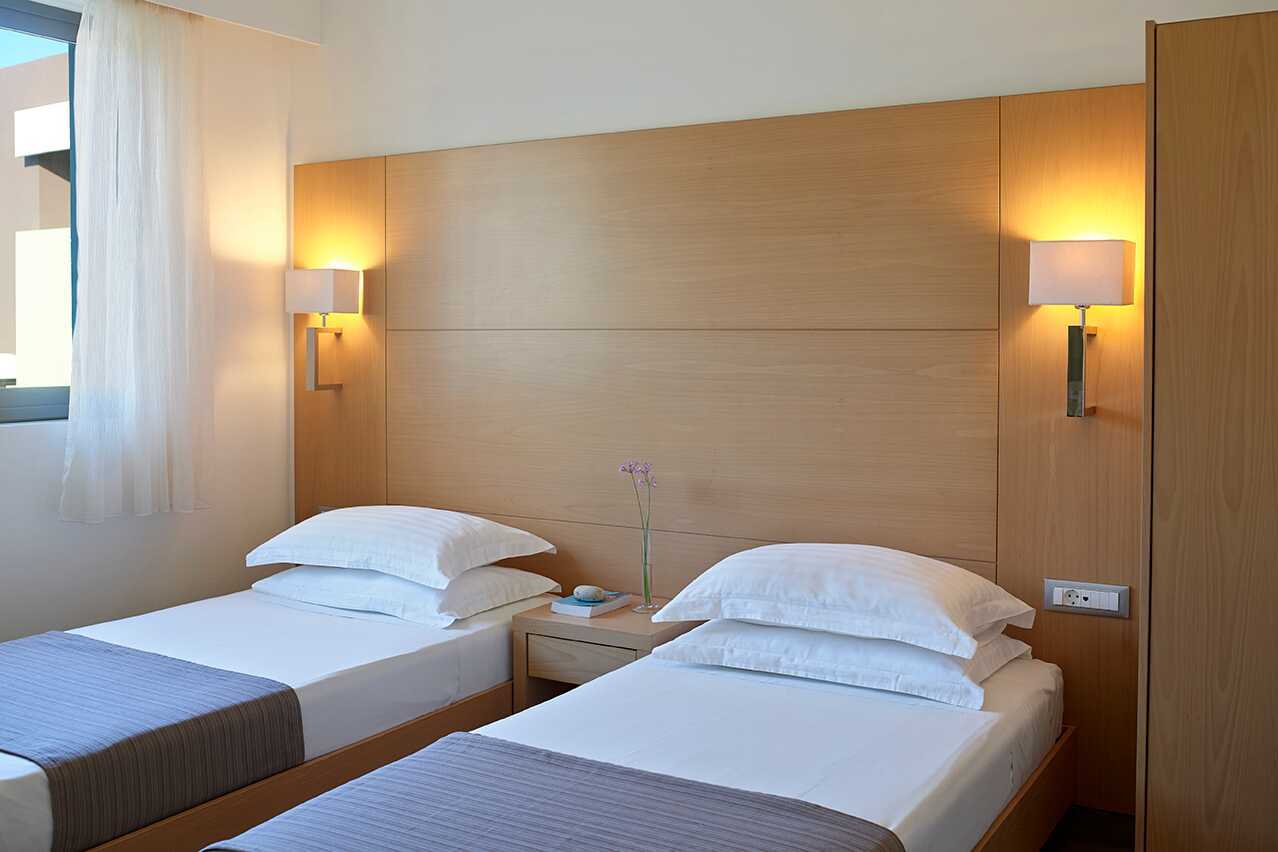 Dobbeltværelser med balkon eller terrasse. En dobbeltseng eller to enkeltsenge. Mulighed for ekstra opredning i enkeltseng. Gratis wifi, aircondition og deponering. Køleskab. El-kedel og kaffe/te. Tv med internationale kanaler. Strygejern og strygebræt. Hårtørrer. Badeværelse med bruser og toilet. Rengøring 7 gange om ugen.