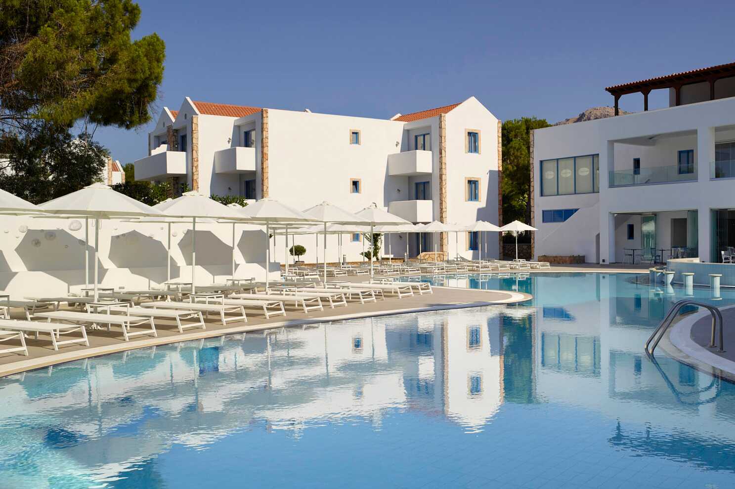 Gratis wifi på hele hotellet. Gratis fitnessrum. Hotellet består af seks 3-etagers bygninger i et område, der strækker sig ned mod stranden. Afstanden til stranden varierer afhængigt af hvor i området du bor, men den er aldrig længere end 100 meter. Der er et minimarked på hotellet. Et mindre udvalg af tavernaer og butikker findes i Pefkos. For lidt mere at vælge imellem anbefaler vi et besøg i Lindos, ca. 4 km væk. Rhodos by ligger lidt over 50 km væk. Lokale busser og taxaer tager dig dertil, men for at opleve mere af Rhodos anbefales en lejebil.