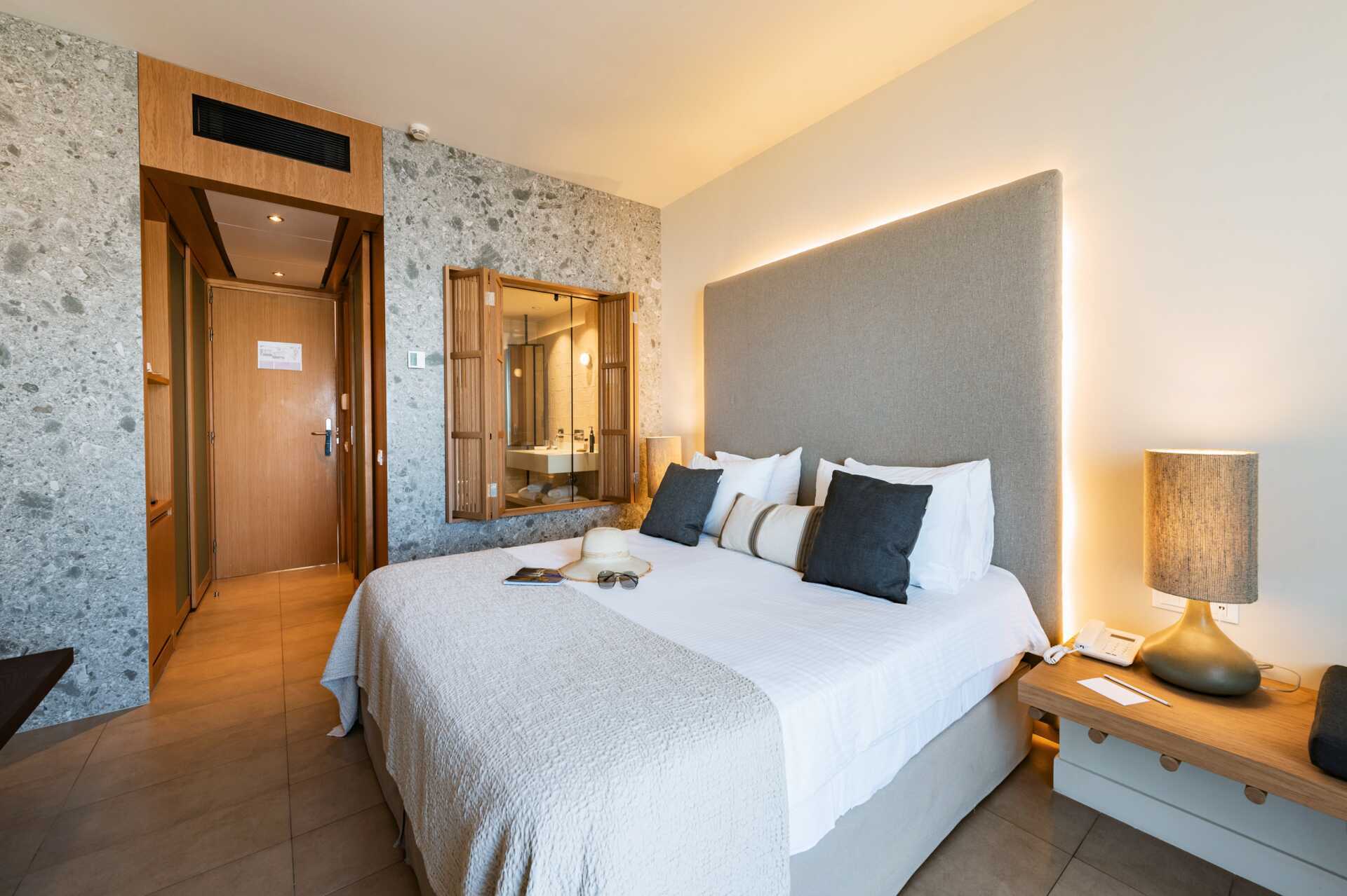 Dobbeltværelser med balkon eller terrasse, nogle med havudsigt. En dobbeltseng eller to enkeltsenge. Gratis wifi, aircondition og deponering. Køleskab. El-kedel og kaffe/te. Nespresso kaffemaskine - kapsler indgår og genopfyldes hver dag. Tv med internationale kanaler. Hårtørrer. Tøfler. Badeværelse med badekar eller bruser samt toilet. Rengøring 7 gange om ugen. Børn under to år tæller med i det maksimale antal personer på værelset.