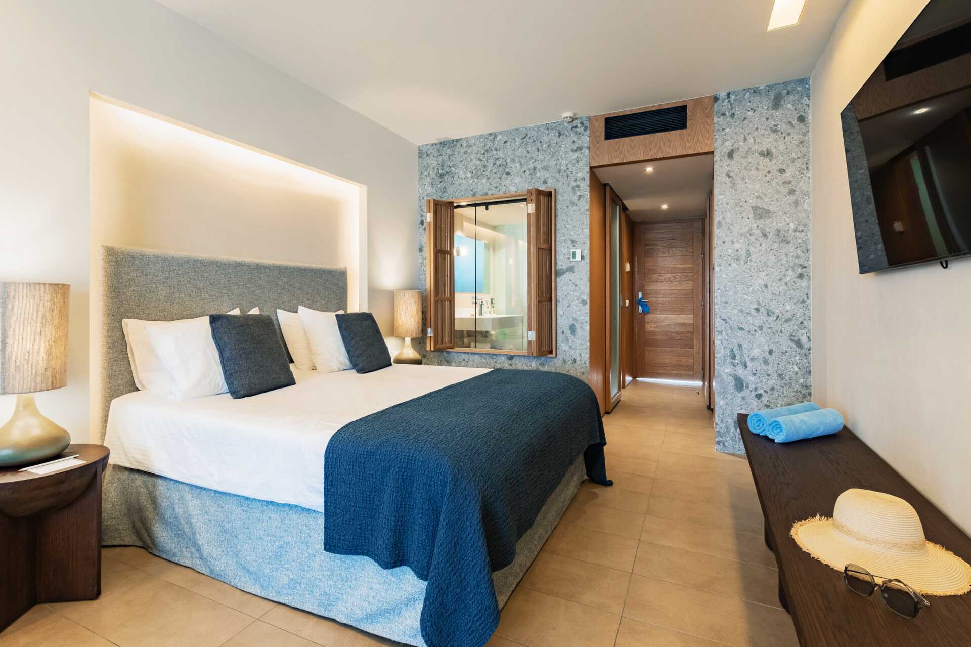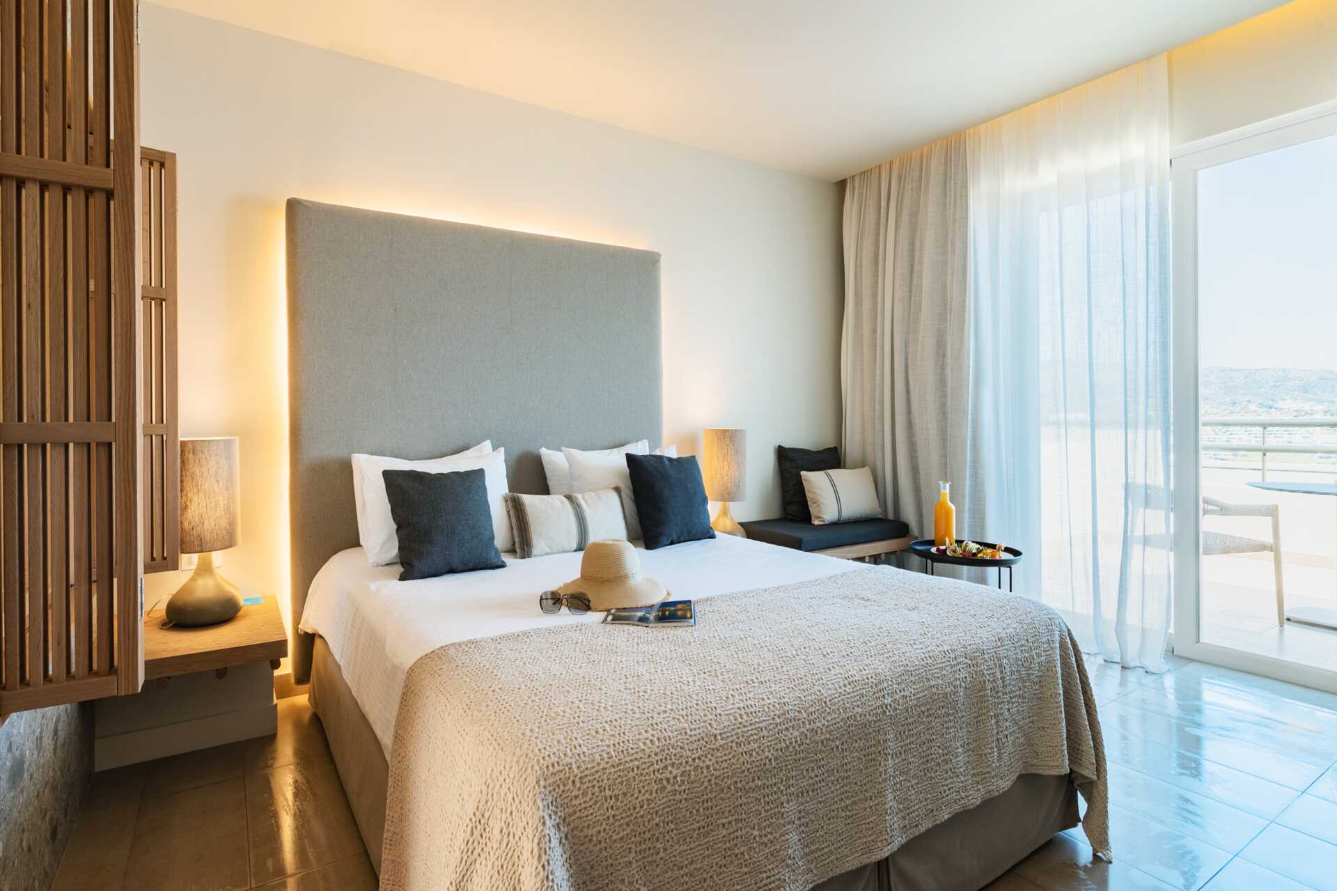 Junior-suiter med balkon eller terrasse med havudsigt. En dobbeltseng eller to enkeltsenge. Gratis wifi, aircondition og deponering. Køleskab. El-kedel og kaffe/te. Nespresso kaffemaskine - kapsler indgår og genopfyldes hver dag. Tv med internationale kanaler. Hårtørrer. Tøfler. Badeværelse med badekar eller bruser samt toilet. Rengøring 7 gange om ugen. Børn under to år tæller med i det maksimale antal personer på værelset.