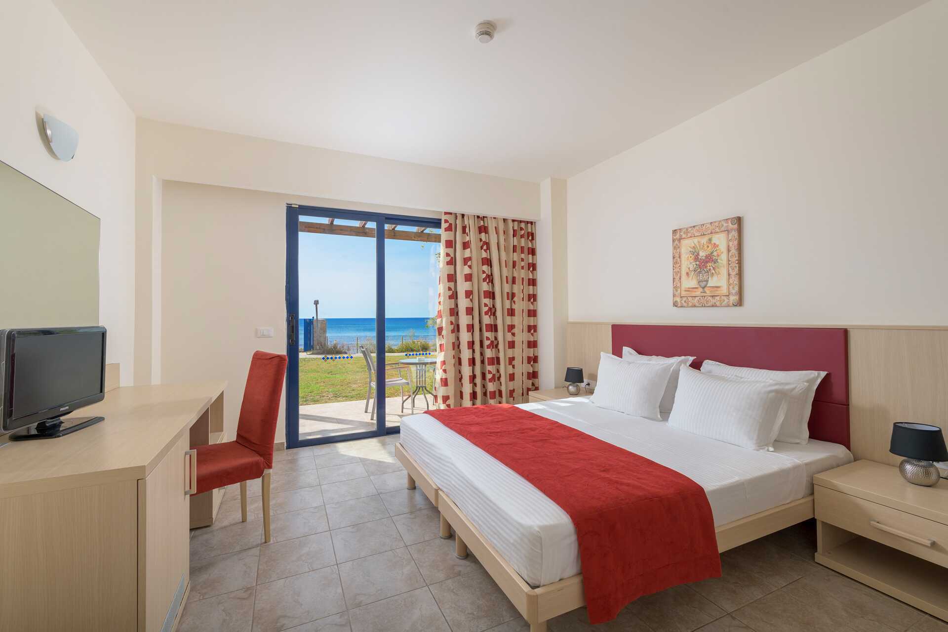Dobbeltværelser med balkon eller terrasse. En dobbeltseng eller to enkeltsenge. Mulighed for ekstra opredning i sovesofa. Gratis wifi og aircondition. Deponering mod betaling. Køleskab. El-kedel og kaffe/te. Tv med internationale kanaler. Hårtørrer. Badeværelse med bruser og toilet. Rengøring 7 gange om ugen.