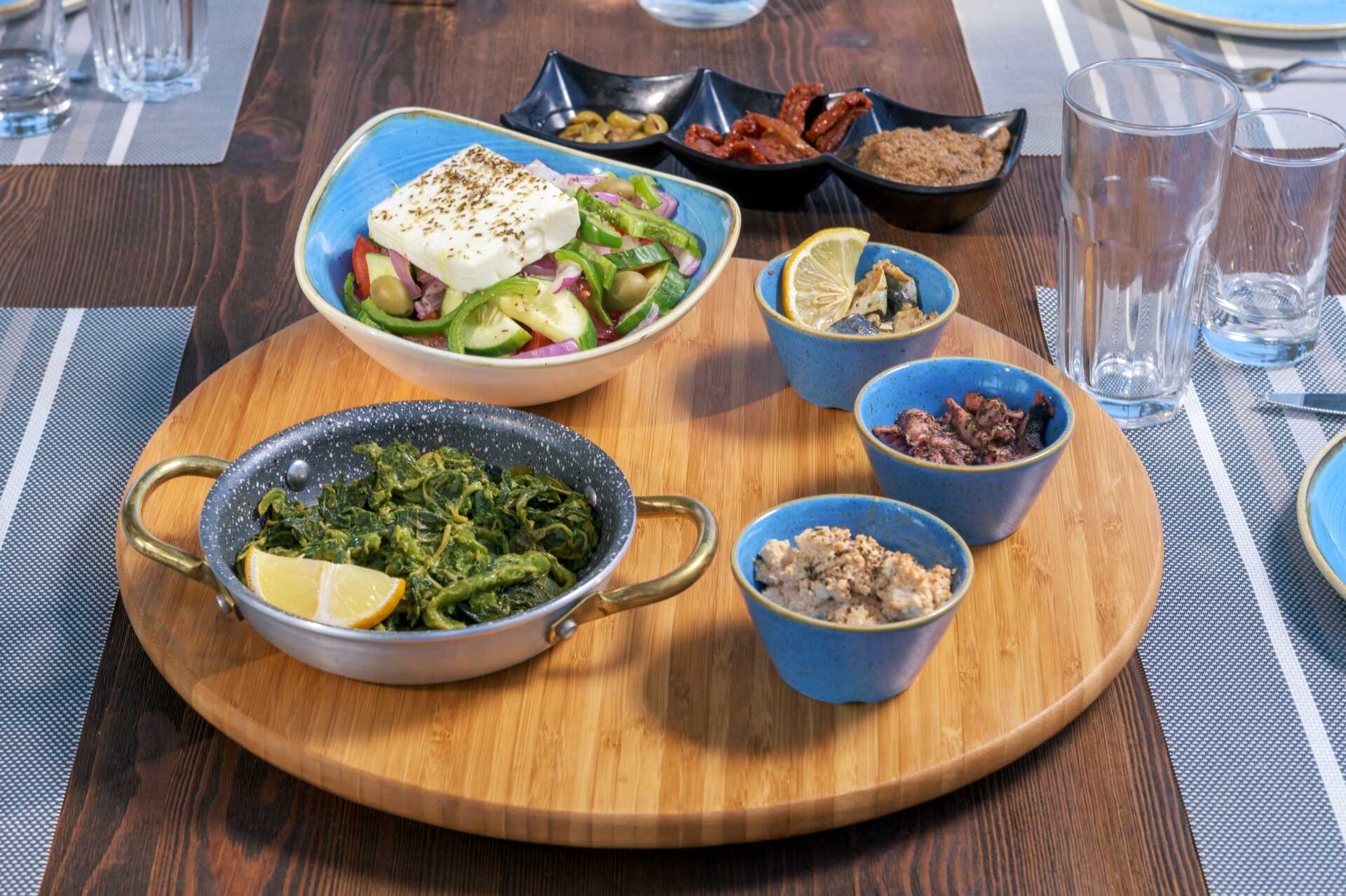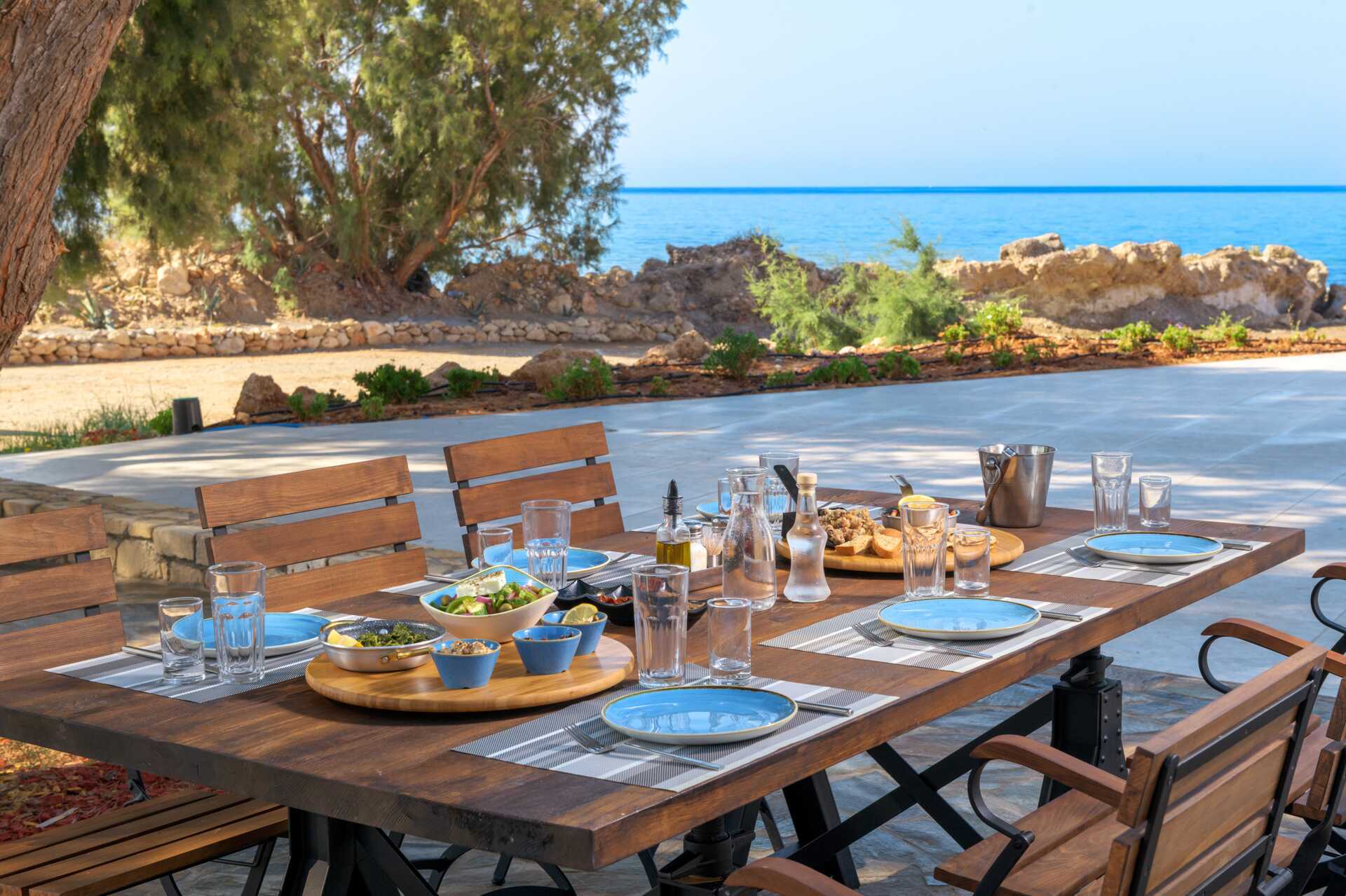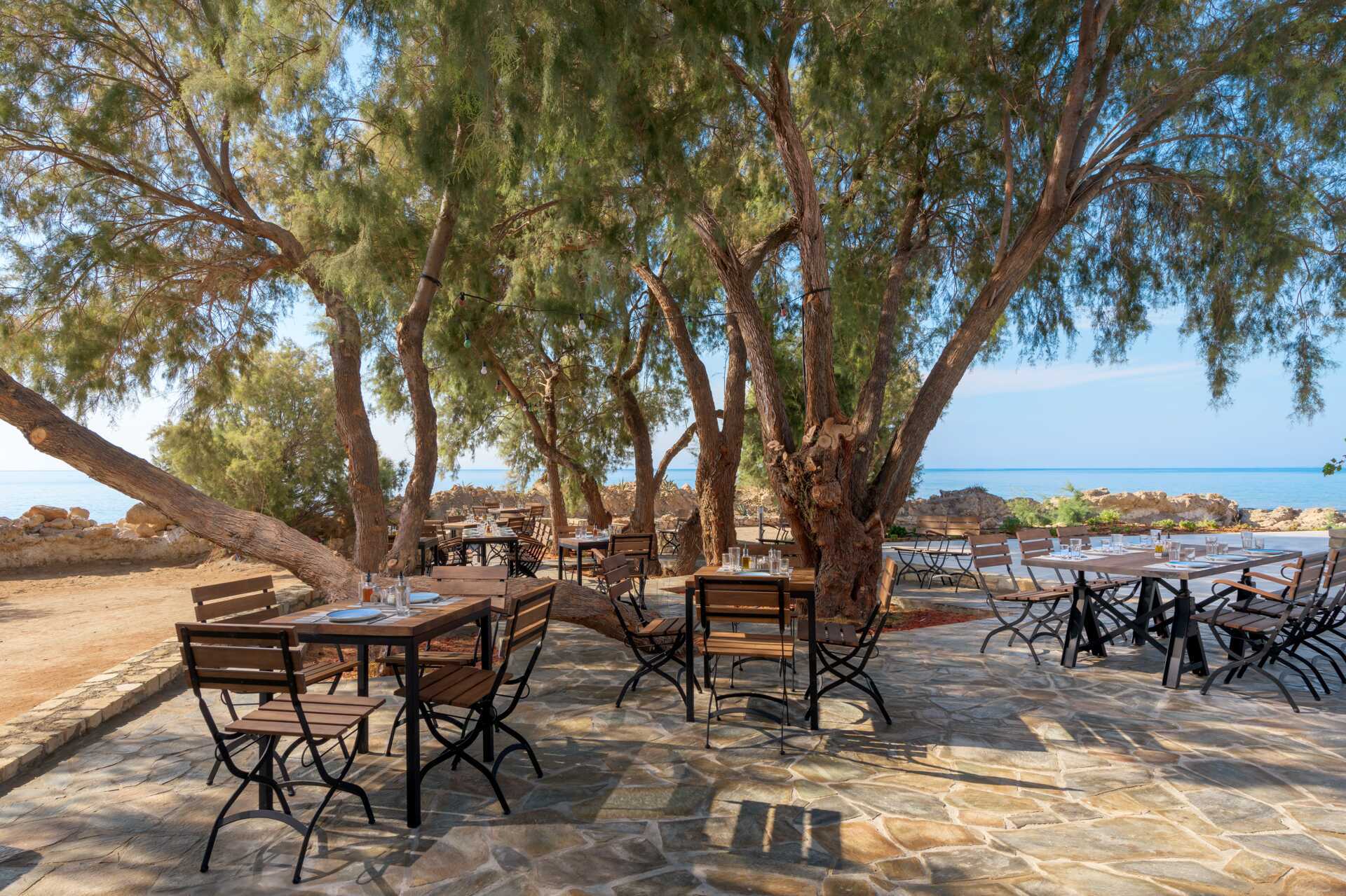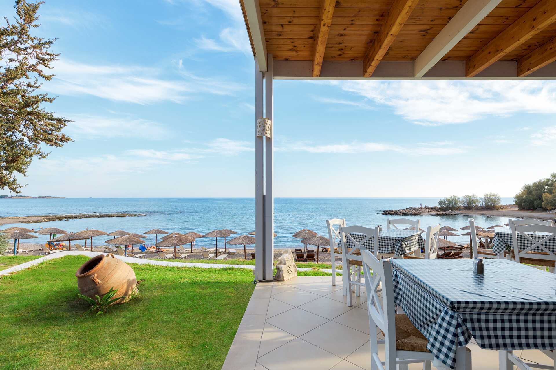Hotellet har en buffetrestaurant i frodige omgivelser med fantastisk udsigt over havet, der serverer morgenmad, frokost og middag. A la carte-restauranten serverer græsk meze.