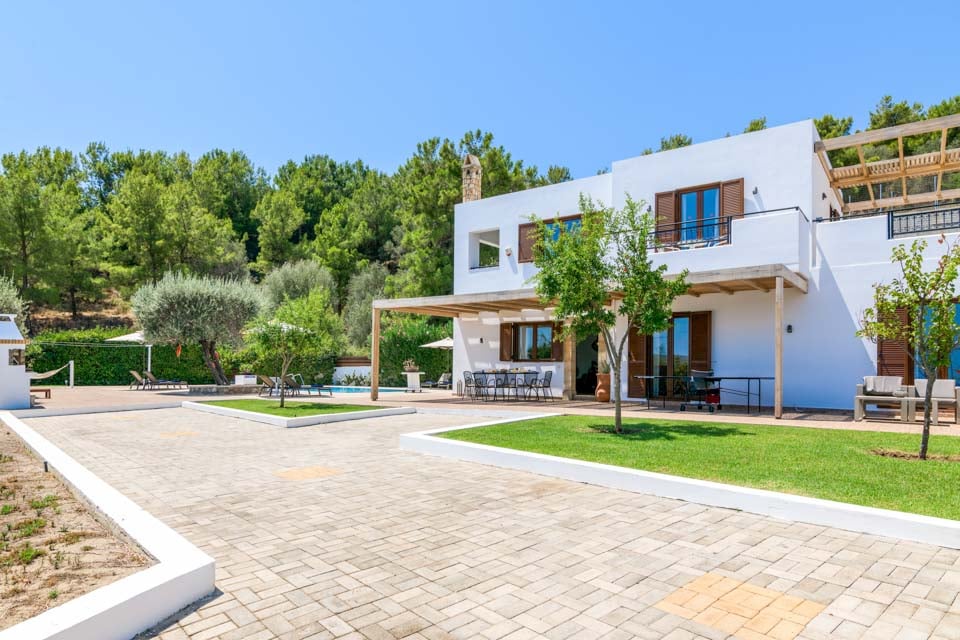 Denne villa har et moderne design, ligger omgivet af træer og byder på en stor have og store terrasser. En skyggefuld træpergola omgiver ejendommen og giver masser af plads til at nyde middage udendørs. Swimmingpoolen er lang nok til at tage morgenbaner, inden du nyder din kaffe fra den private balkon ovenpå.
