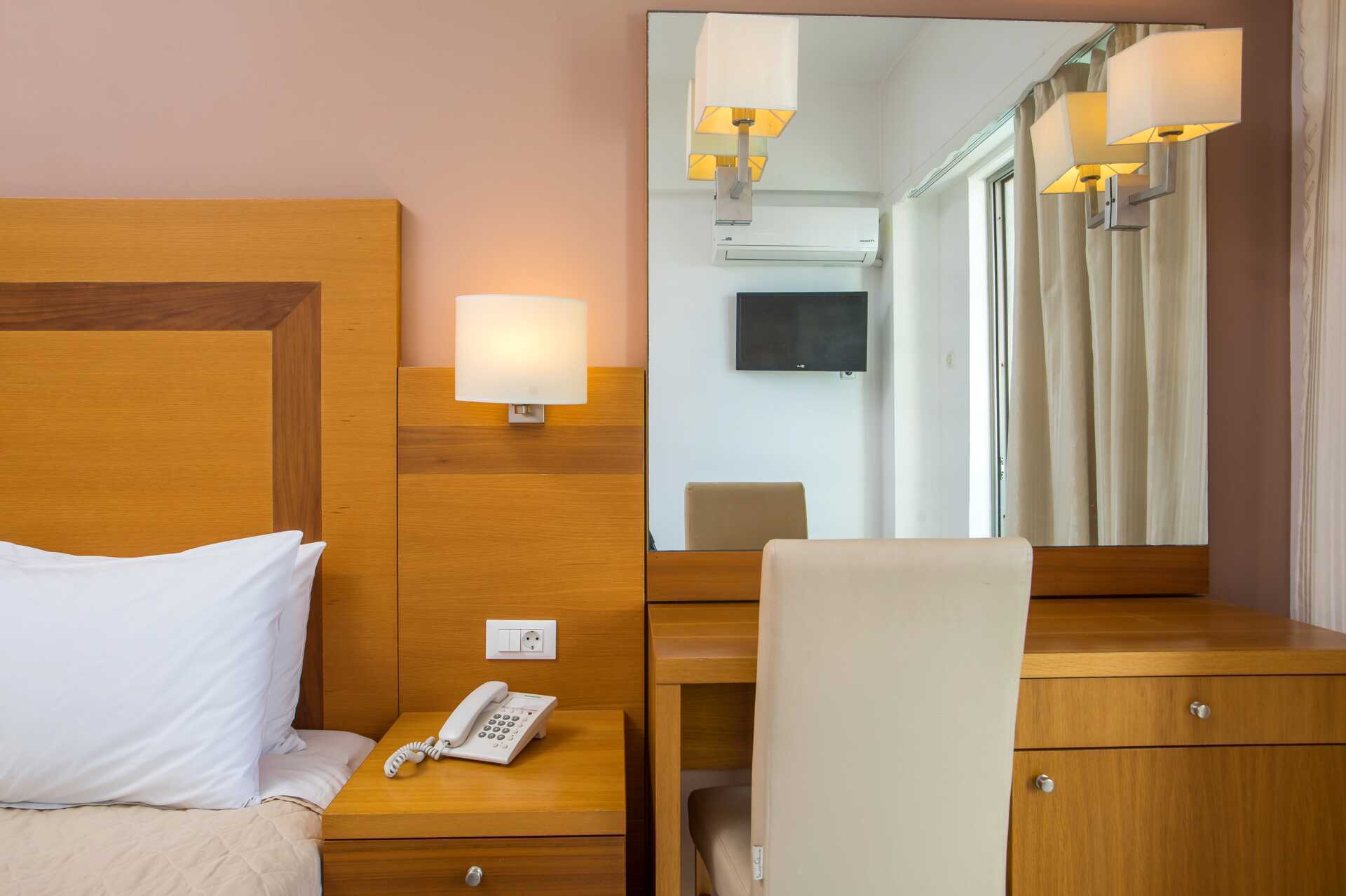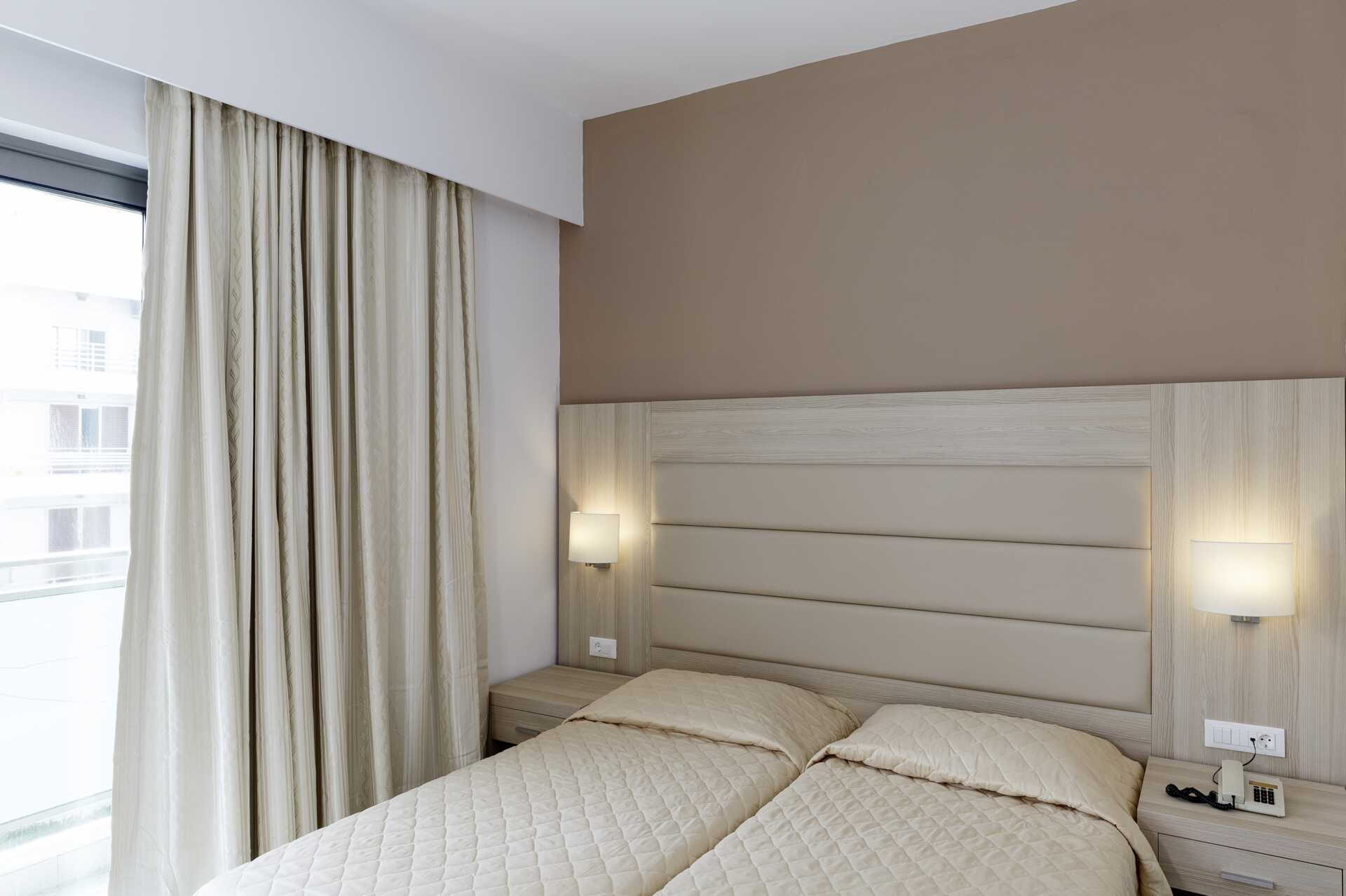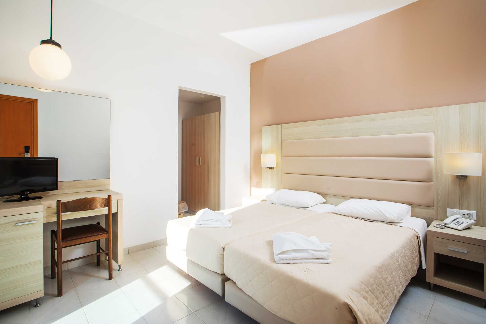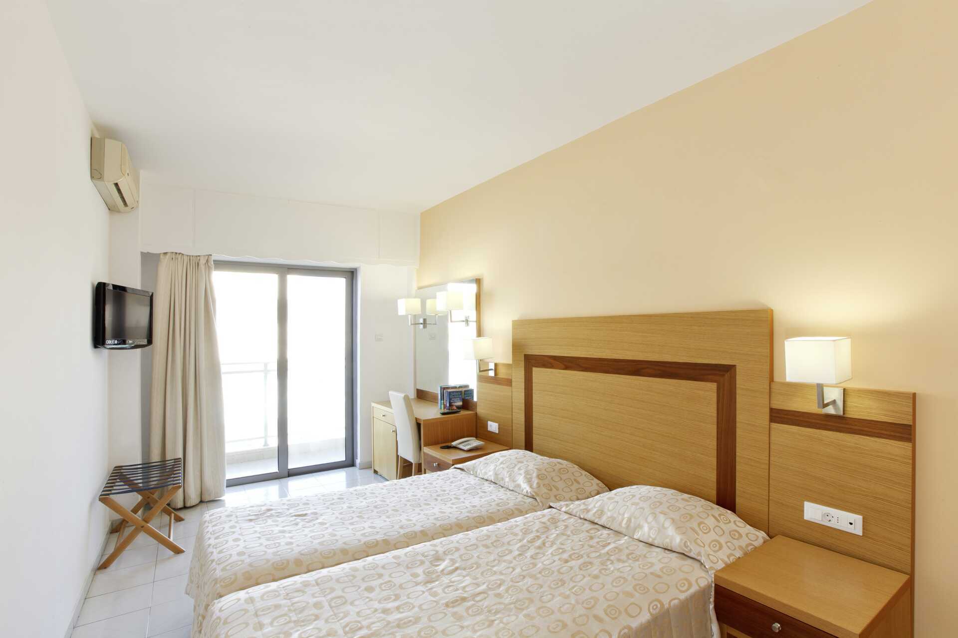 Dobbeltværelser med balkon, nogle med delvis havudsigt. En dobbeltseng eller to enkeltsenge. Mulighed for ekstra opredning i fold ud-seng. Gratis aircondition i perioden 2. juli-26. august 2025, ellers mod betaling. Gratis wifi og deponering. Køleskab. Tv. Hårtørrer. Badeværelse med badekar eller bruser samt toilet. Rengøring 6 gange om ugen.