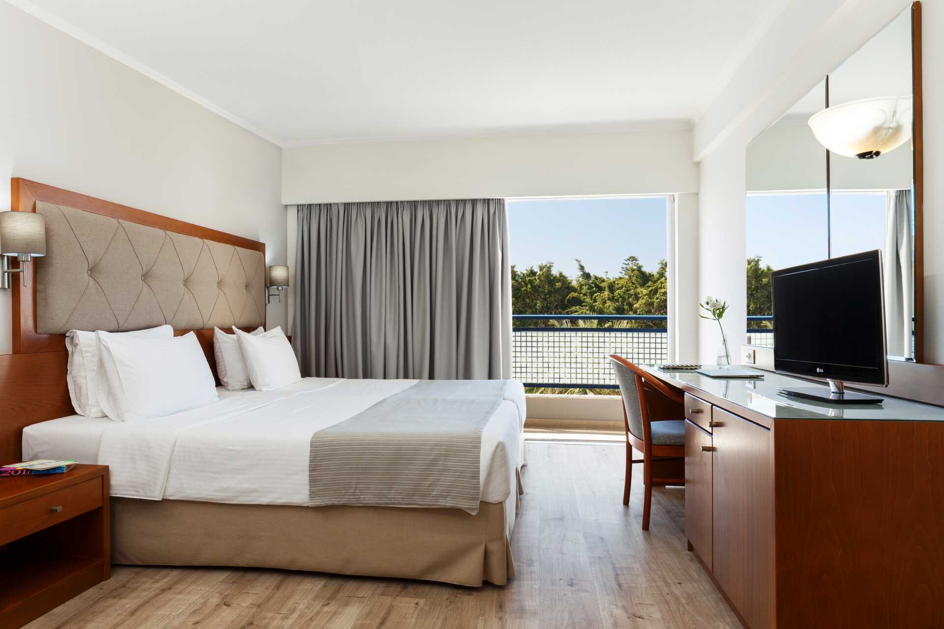 Dobbeltværelse med balkon. En dobbeltseng eller to enkeltsenge. Mulighed for ekstra opredning i enkeltseng eller i sovesofa. Gratis wifi, aircondition og deponering. Køleskab. El-kedel og kaffe/te. Tv med internationale kanaler. Hårtørrer. Badeværelse med bruser og toilet. Rengøring 7 gange om ugen.