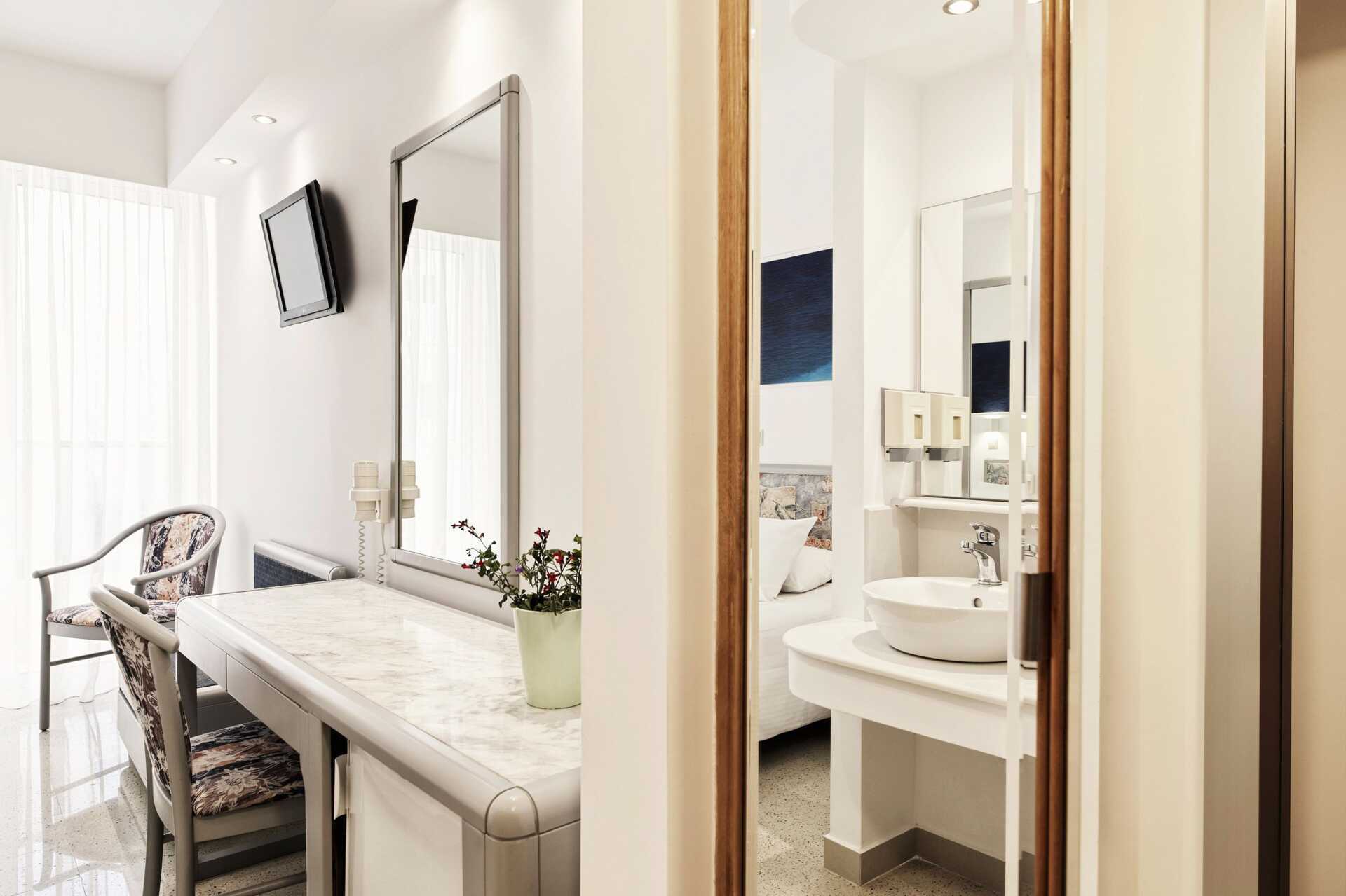 Superior-værelse med balkon, nogle med udsigt over en park. To enkeltsenge. Gratis wifi og deponering. Aircondition indgår fra juni til september. Køleskab. Tv med internationale kanaler. Hårtørrer. Badeværelse med bruser og toilet. Rengøring 7 gange om ugen.