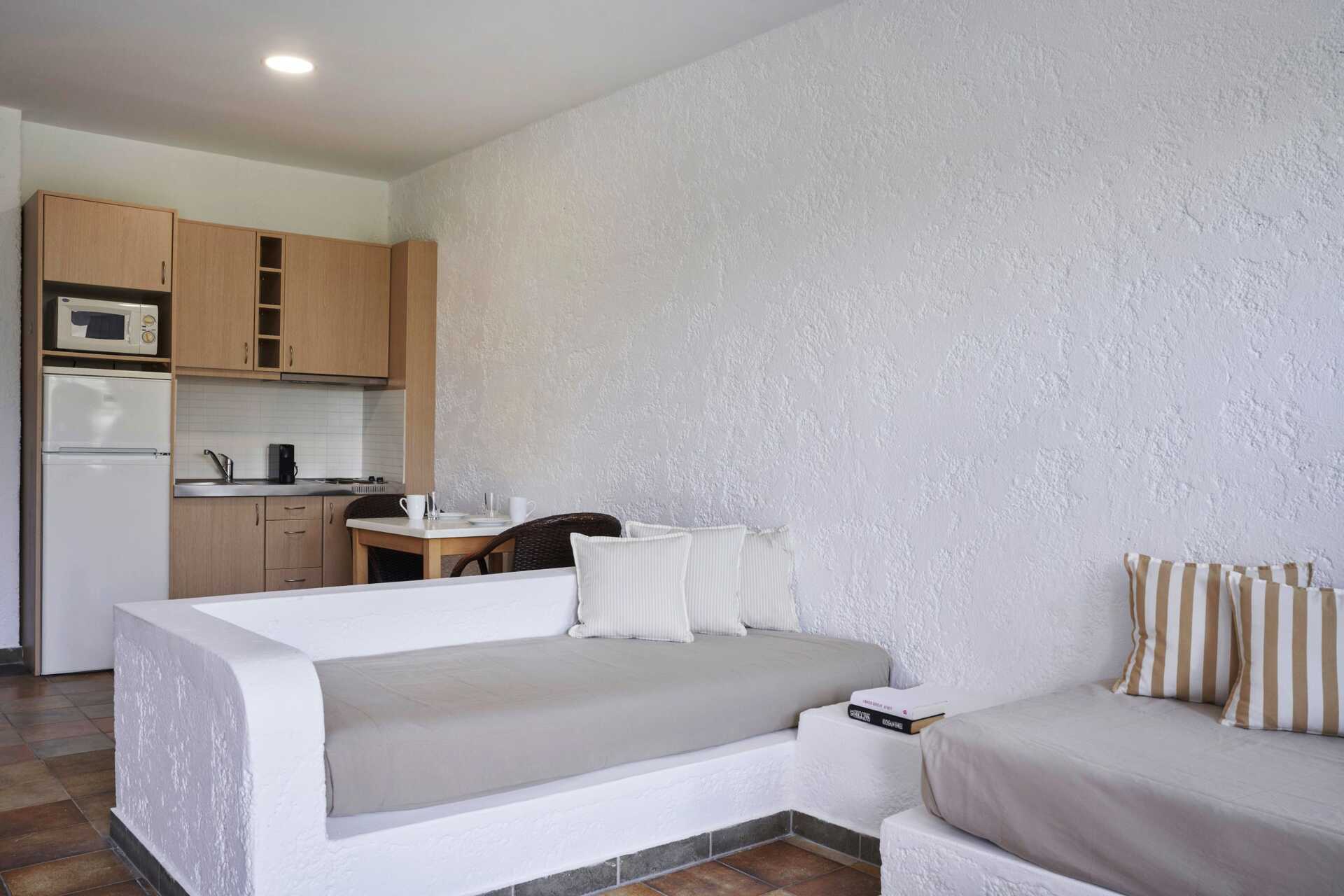 Som gæst på The Apartments er du velkommen til at besøge søsterhotellet Esperias poolområde, hvor indcheckningen også finder sted. Transferbussen afleverer og henter gæster og bagage ca. 130 meter fra hotellet.