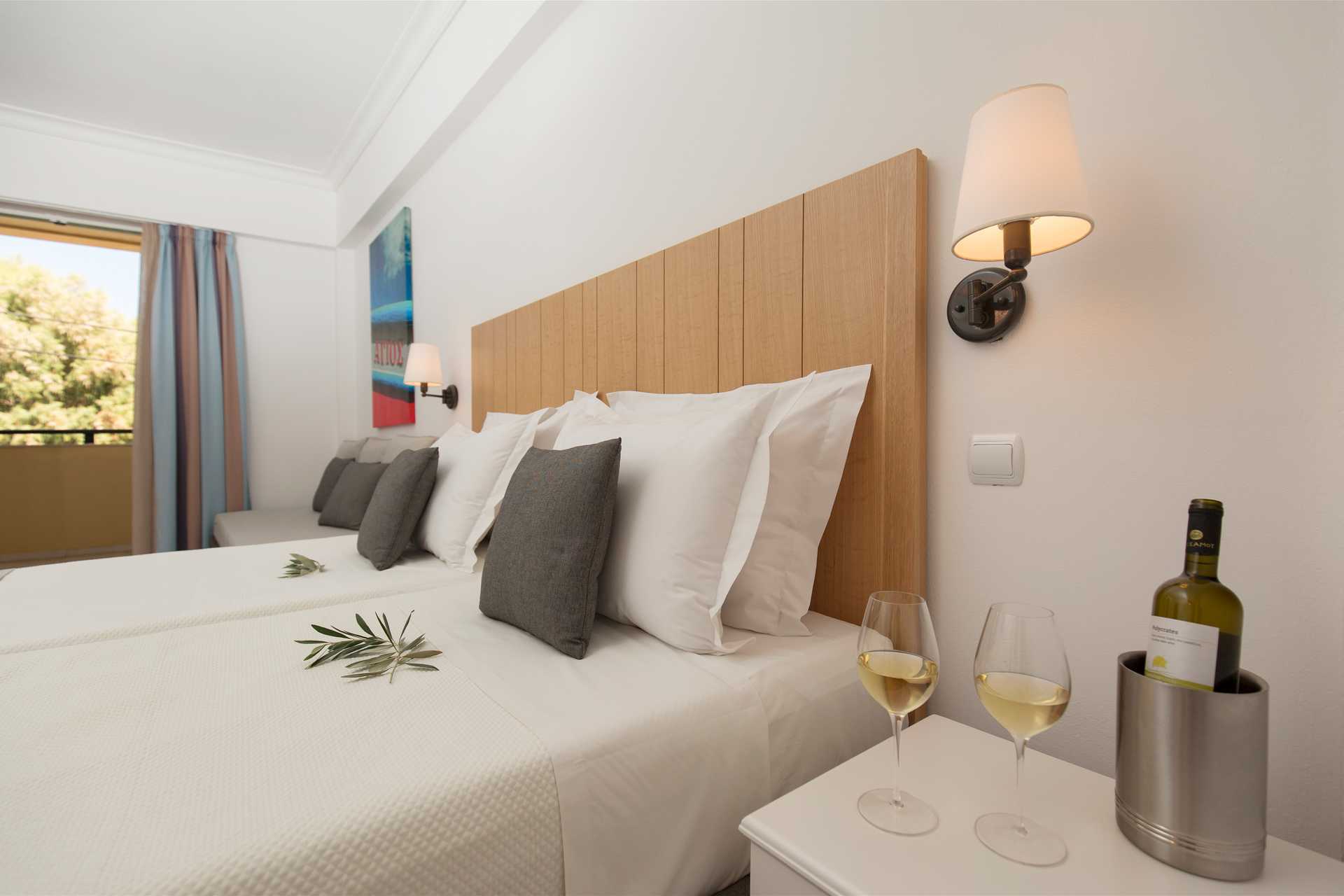 Dobbeltværelser med balkon, nogle med delvis havudsigt. En dobbeltseng eller to enkeltsenge. Mulighed for ekstra opredning i sovesofa. Gratis wifi, aircondition og deponering. Køleskab. Tv med internationale kanaler. Hårtørrer. Badeværelse med badekar eller bruser samt toilet. Rengøring 6 gange om ugen.