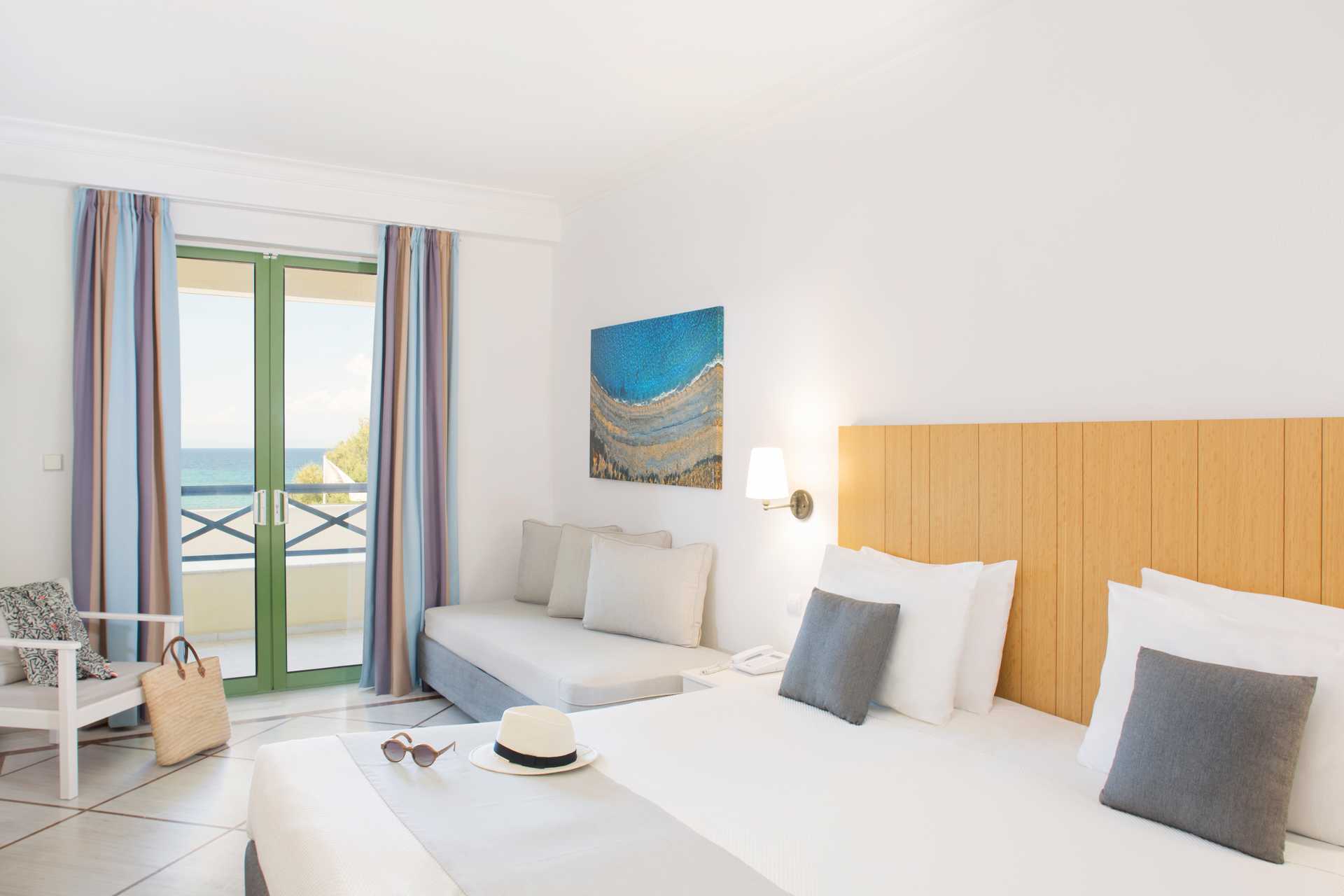 Dobbeltværelse med balkon og direkte havudsigt. På hotellet hedder værelsestypen Seafront. En dobbeltseng eller to enkeltsenge. Mulighed for ekstra opredninger i sovesofa. Gratis wifi, aircondition og deponering. Køleskab. Tv med internationale kanaler. Hårtørrer. Badekåber og tøfler. Badkar med bruser og toilet. Rengøring 6 gange om ugen. Støj fra trafik uden for hotellet kan opleves som forstyrrende i denne værelsestype.