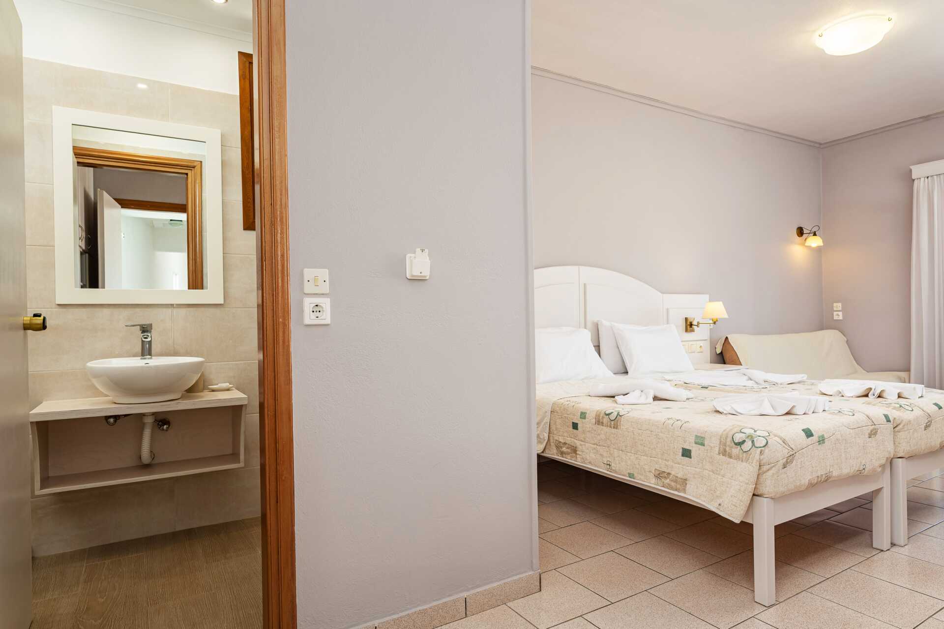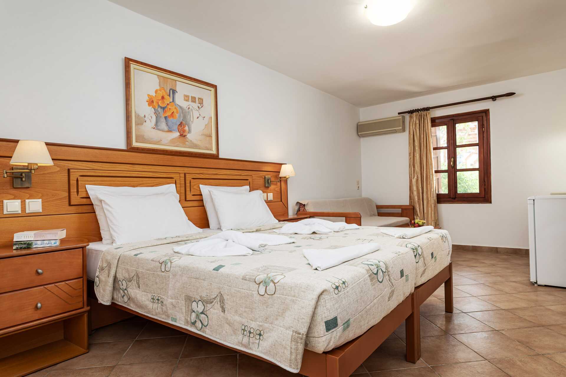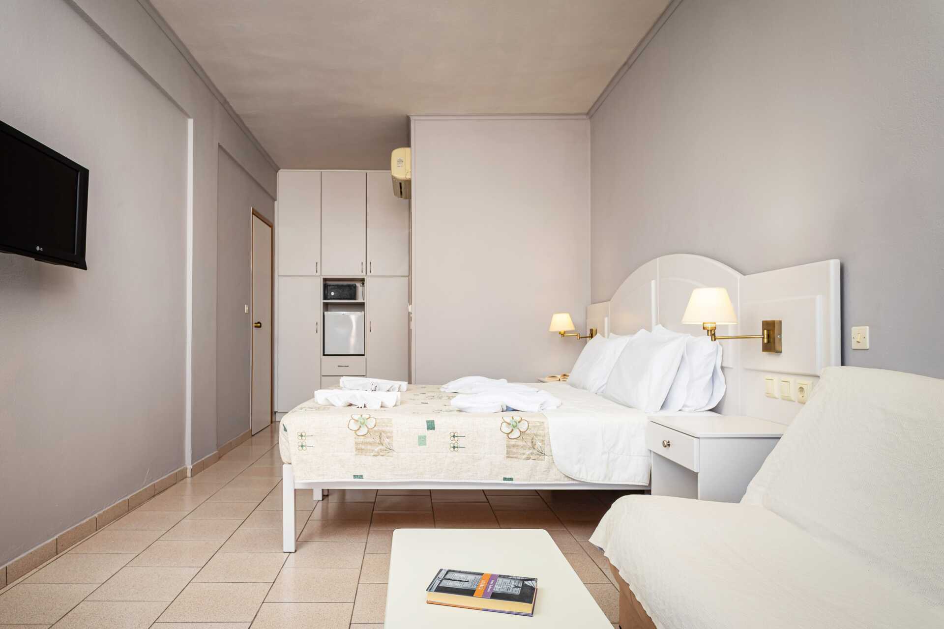 Dobbeltværelse med balkon eller terrasse eller med terrasse i stueplan. En dobbeltseng eller to enkeltsenge. Mulighed for ekstra opredning i sovesofa. Gratis wifi, aircondition og deponering. Køleskab. Tv med internationale kanaler. Hårtørrer. Badeværelse med badekar eller bruser samt toilet. Rengøring 2 gange om ugen.