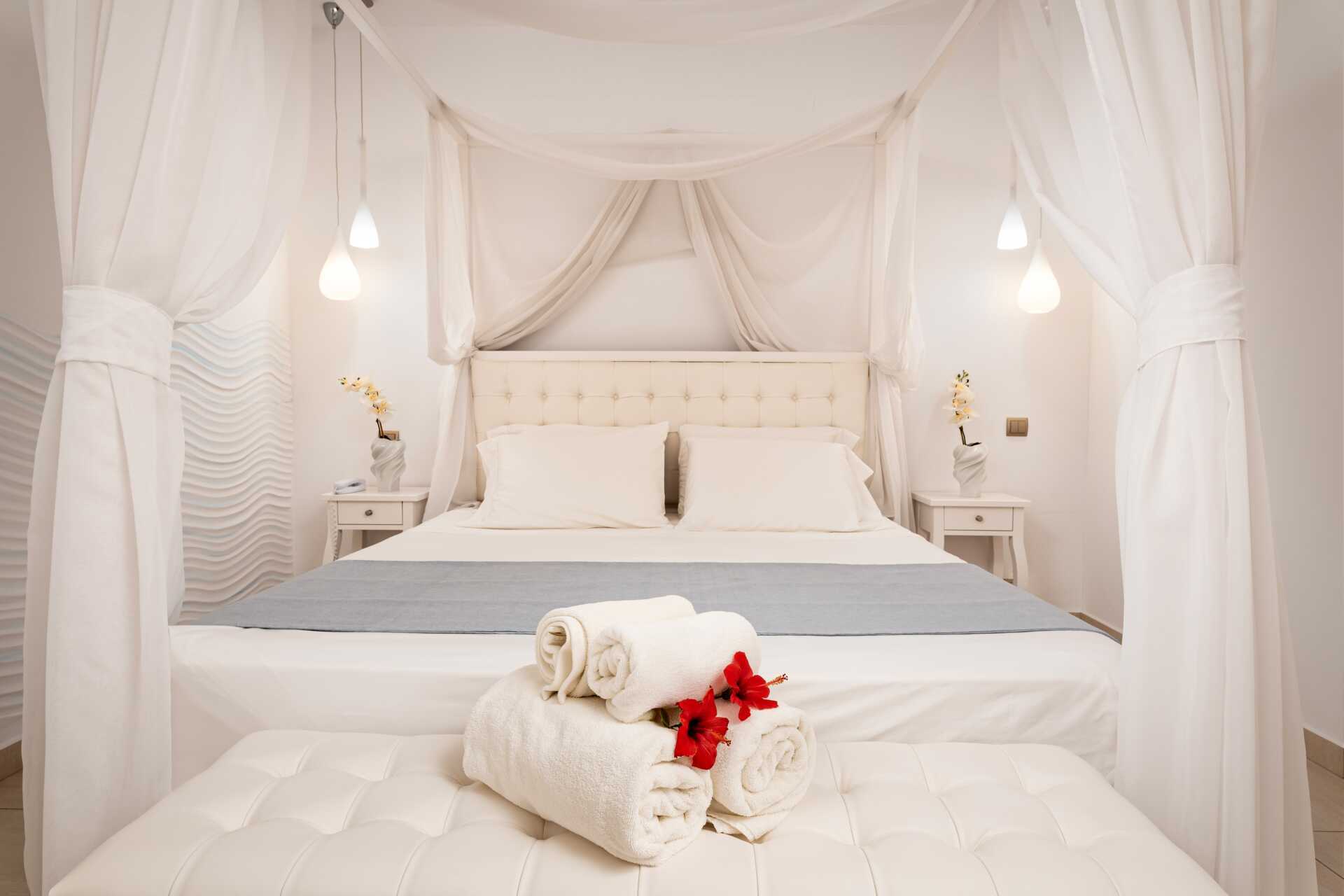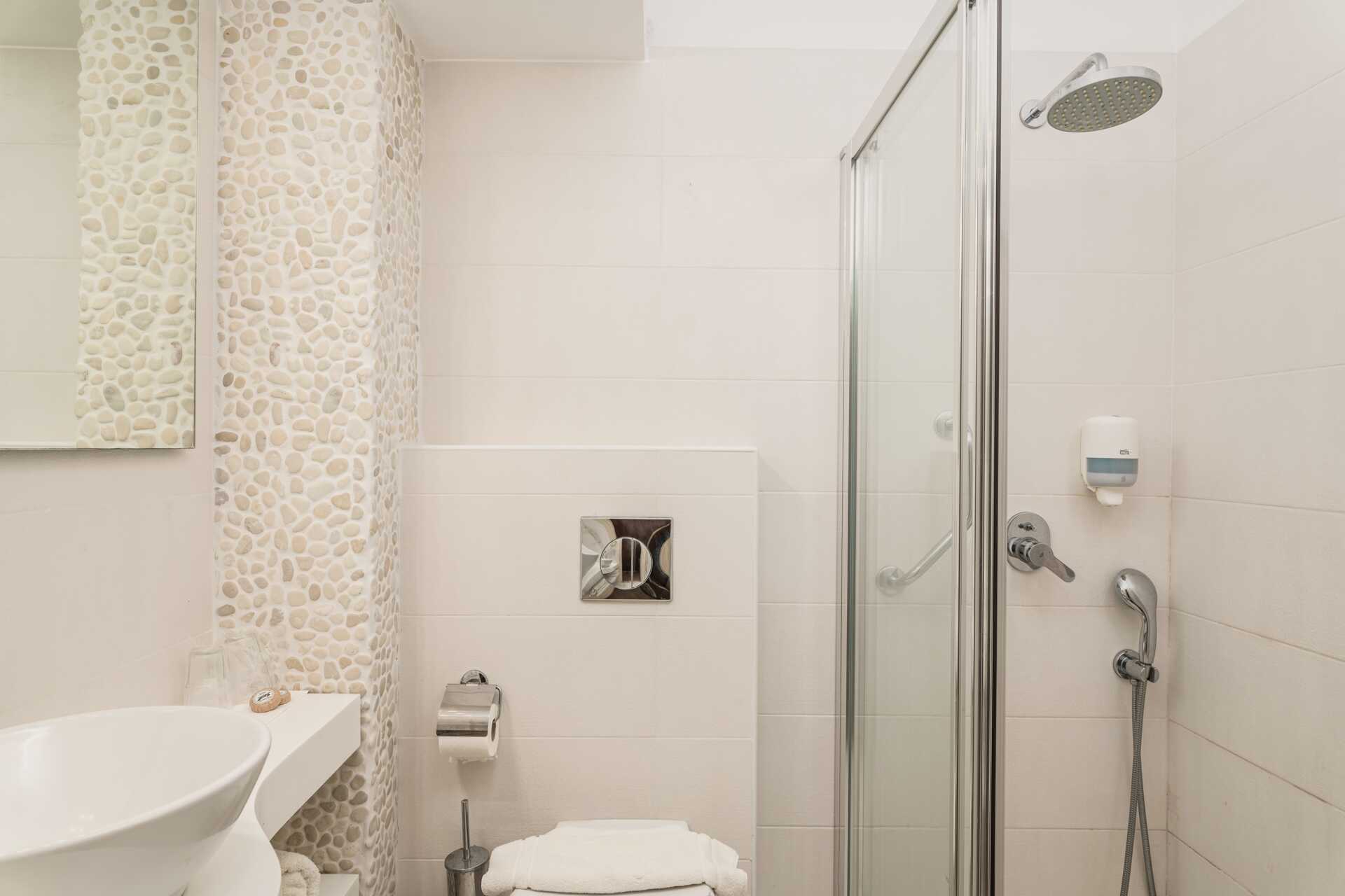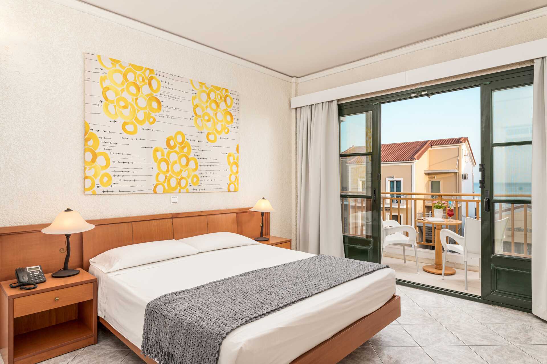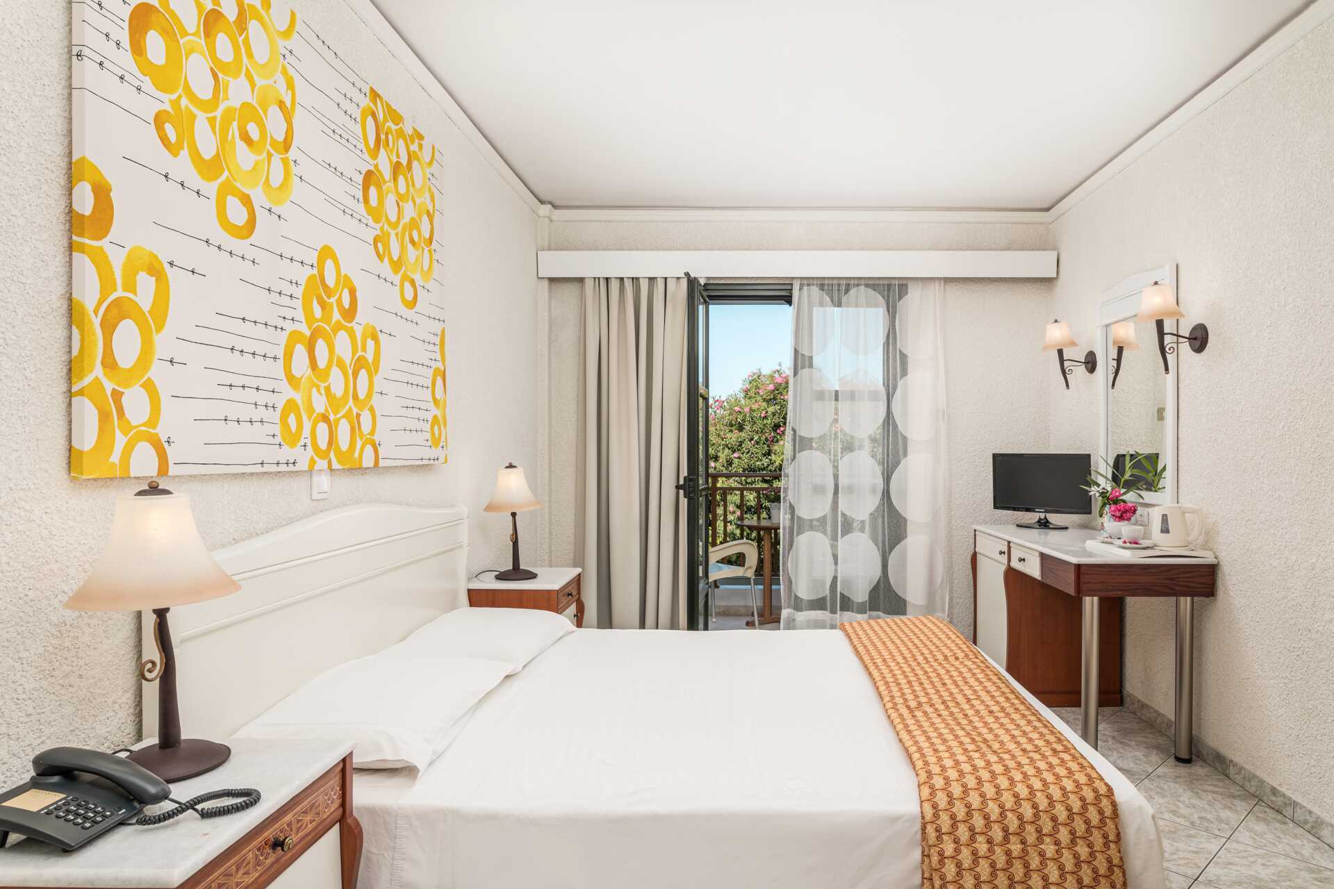Dobbeltværelse med balkon eller terrasse eller kun med balkon. En dobbeltseng. Mulighed for ekstra opredning i fold ud-seng. Gratis wifi, aircondition og deponering. Køleskab. Tv med internationale kanaler. Badekåber og tøfler. Hårtørrer. Badeværelse med bruser og toilet. Rengøring 7 gange om ugen.