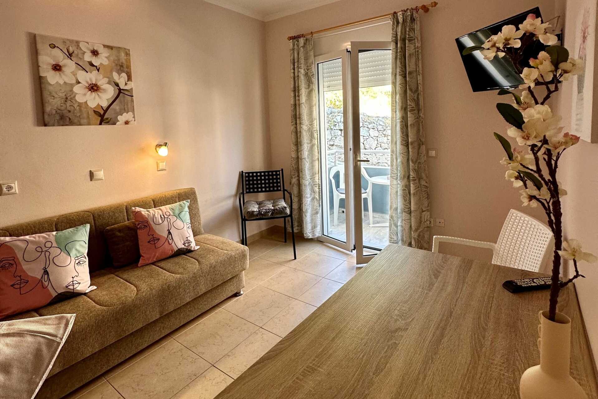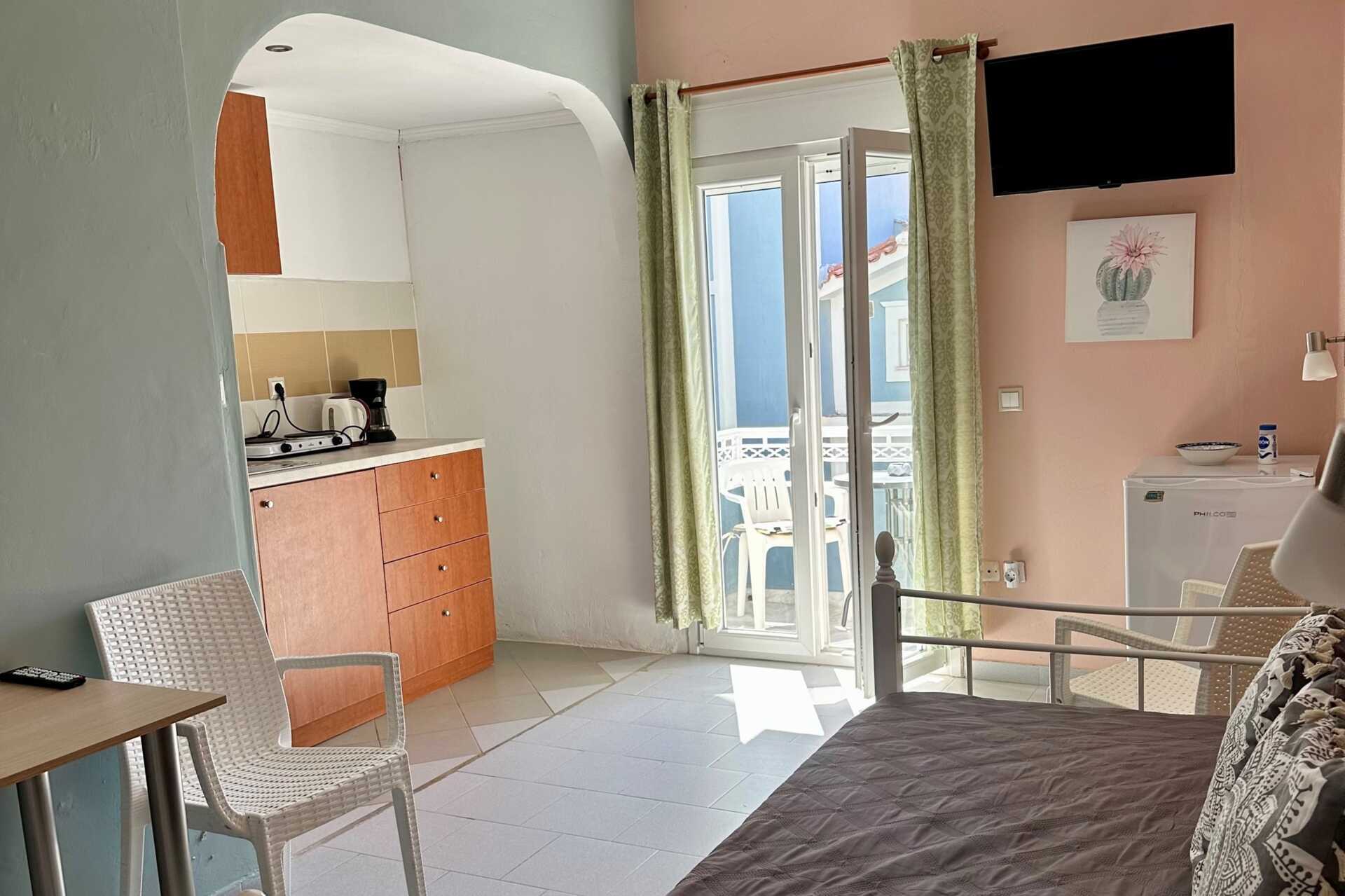 2-værelses lejlighed med balkon eller terrasse. Et soveværelse og et kombineret opholdsrum med minikøkken. En dobbeltseng. Mulighed for ekstra opredninger i sovesofa eller enkeltseng. Minikøkken med kogeplader, køleskab, kaffemaskine, el-kedel og enkelt køkkenudstyr. Gratis wifi og aircondition i soveværelset. Deponering mod betaling. Badeværelse med smal bruseniche og toilet. Rengøring 6 gange om ugen.