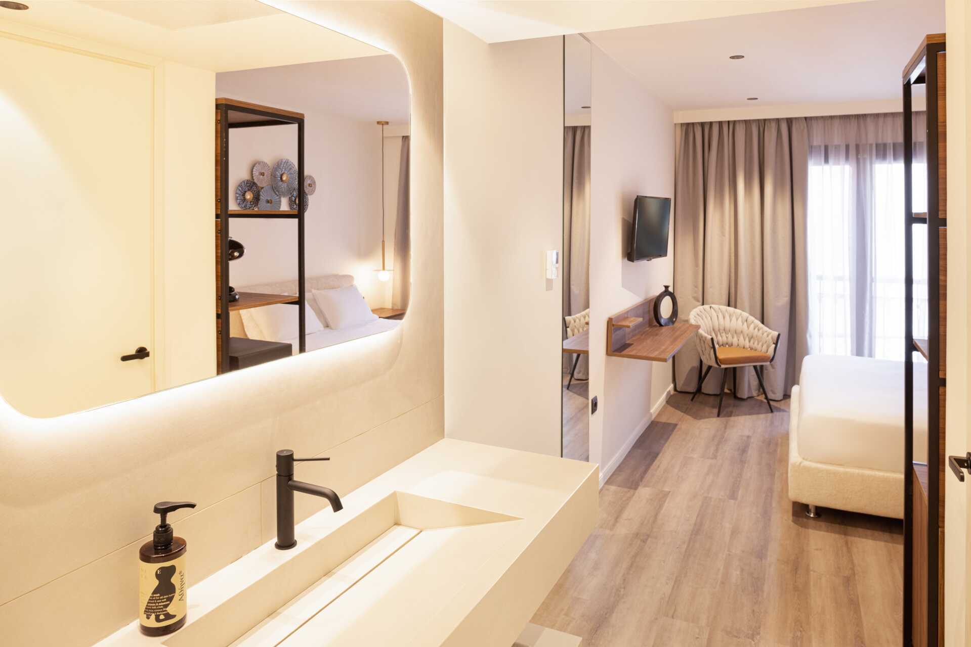 Nyrenoverede værelser med balkon. En seng. Køleskab og kaffemaskine. Gratis wifi, deponering og aircondition. Tv med internationale kanaler. Badekåber og tøfler. Hårtørrer. Badeværelse med bruser og toilet. Rengøring 7 gange om ugen.
