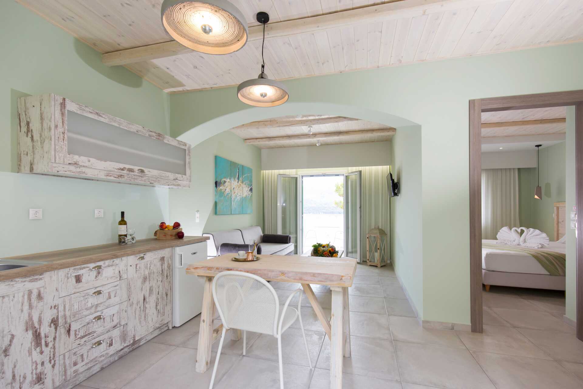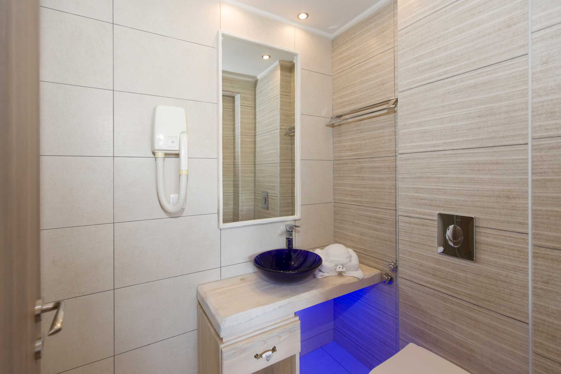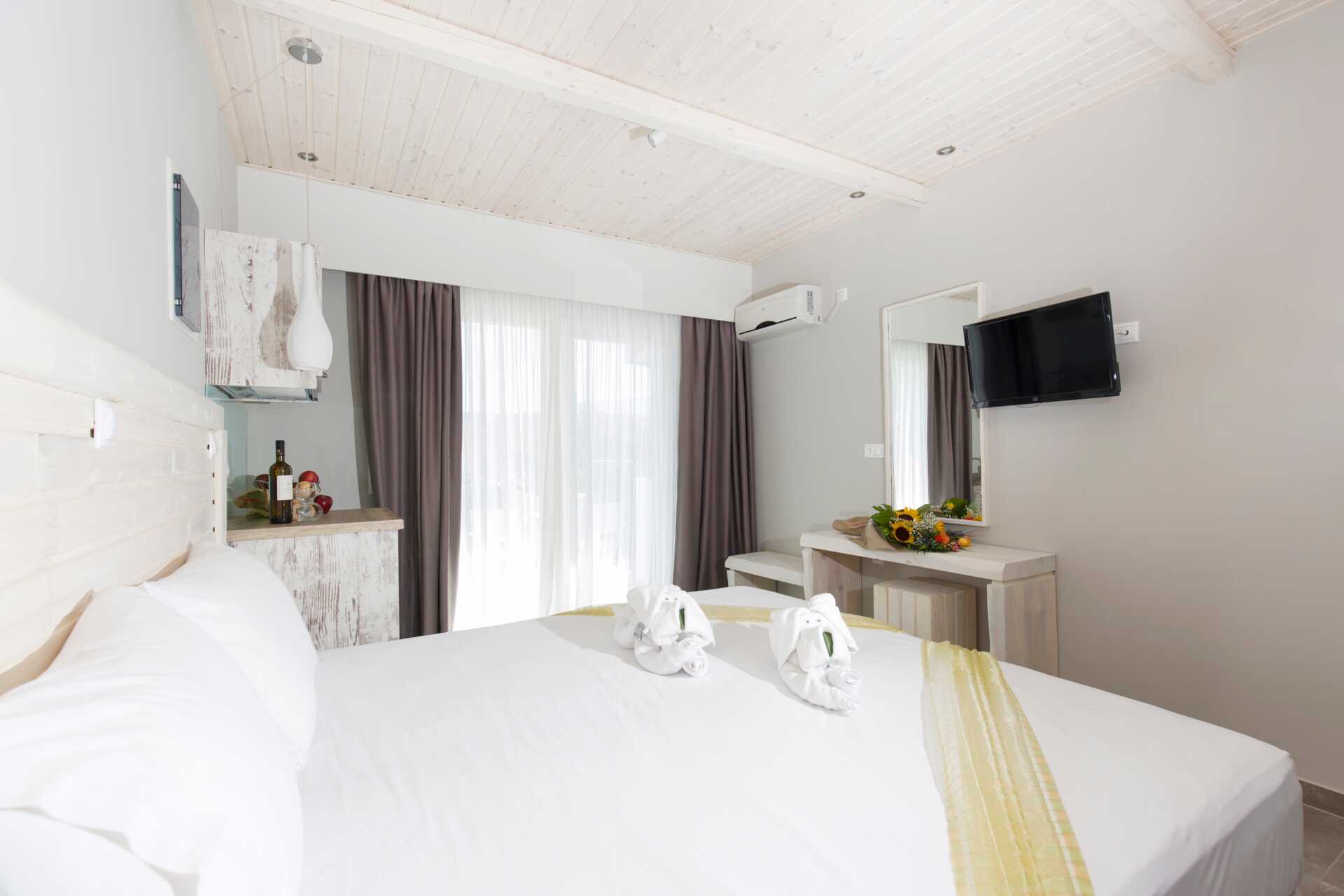 2-værelses lejlighed superior, stor balkon med jacuzzi og havudsigt. Der er solstole på balkonen. Et soveværelse og et kombineret opholdsrum med minikøkken. To enkeltsenge. Mulighed for ekstra opredninger i sovesofa. Minikøkken med kogeplader, køleskab og enkelt køkkenudstyr. Gratis wifi og aircondition. Deponering mod betaling. Tv med internationale kanaler. Hårtørrer. Badeværelse med bruser og toilet. Rengøring 6 gange om ugen.