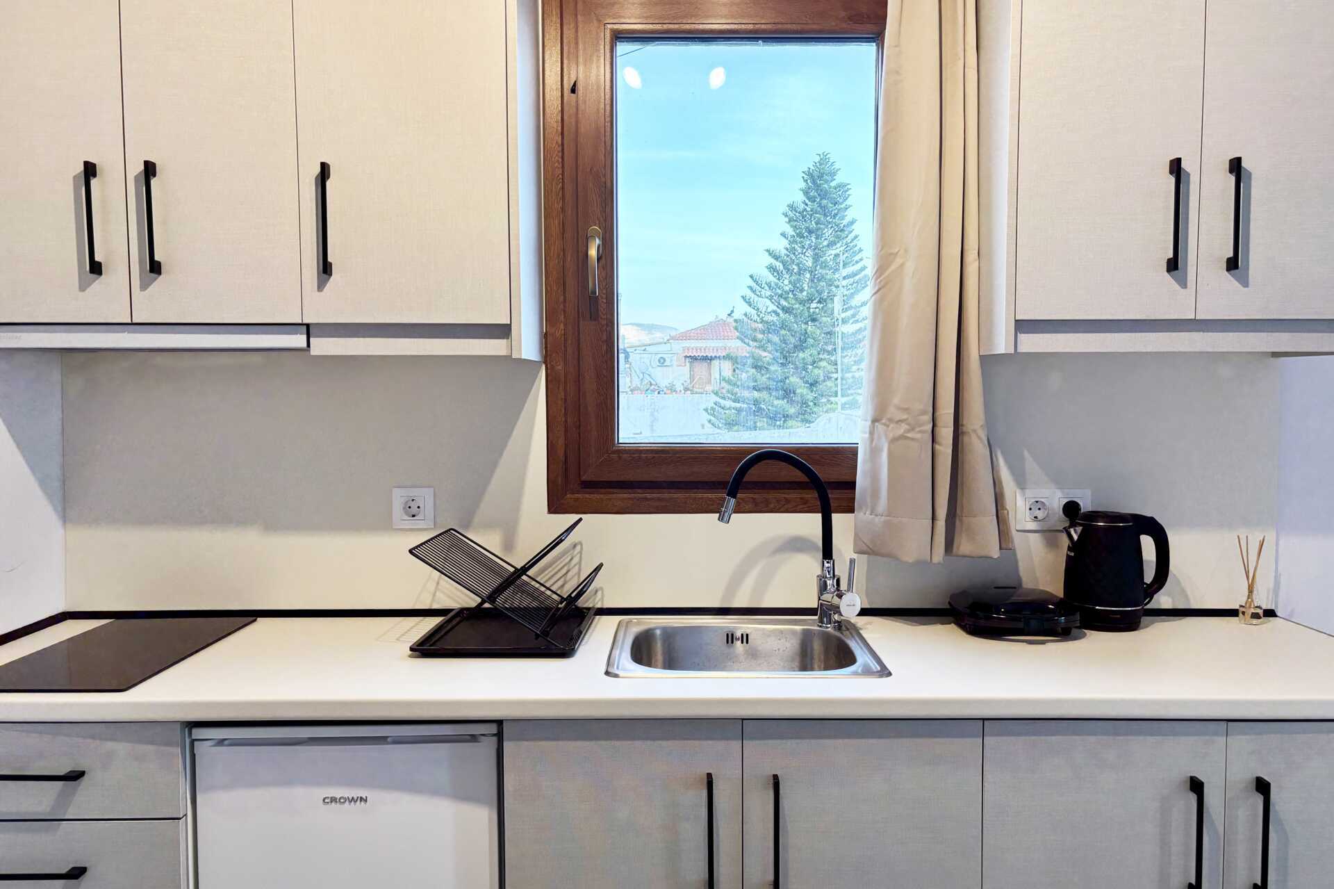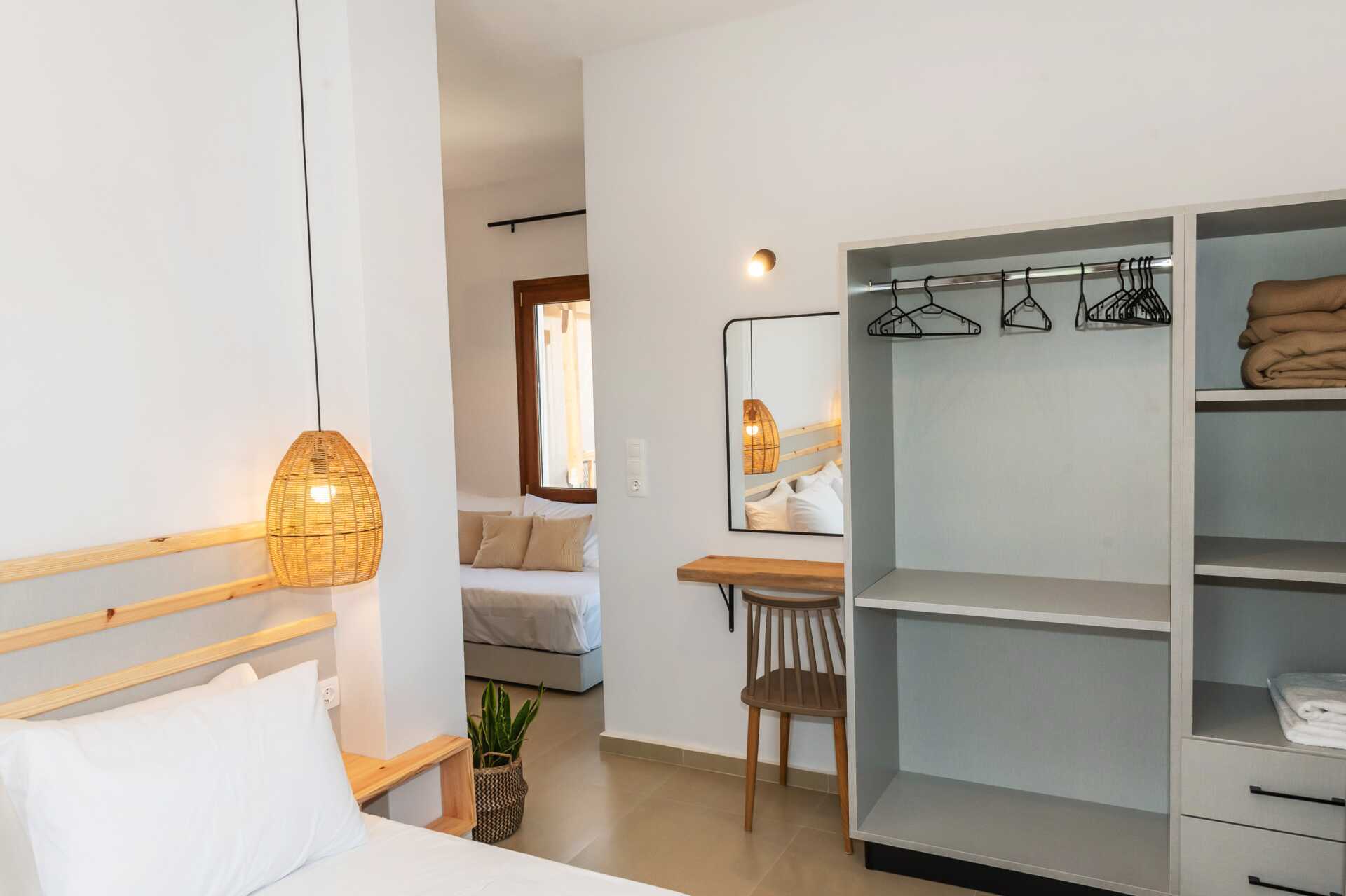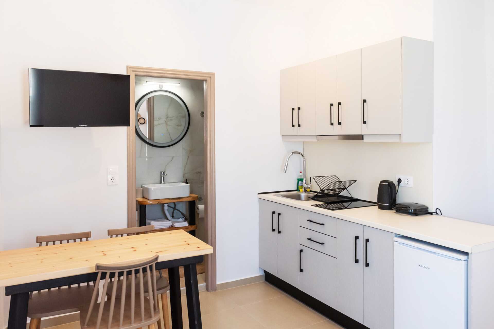 1-værelses lejlighed med balkon eller terrasse i stueplan med delvis udsigt, se tekst, eller med udsigt mod bjergene. Kombineret soveværelse og minikøkken. En dobbeltseng. Mulighed for ekstra opredning i sovesofa. Minikøkken med kogeplader, køleskab, el-kedel, sandwichgrill og enkelt køkkenudstyr. Gratis wifi, aircondition og deponering. Tv med internationale kanaler. Badeværelse med bruser og toilet. Rengøring 6 gange om ugen.