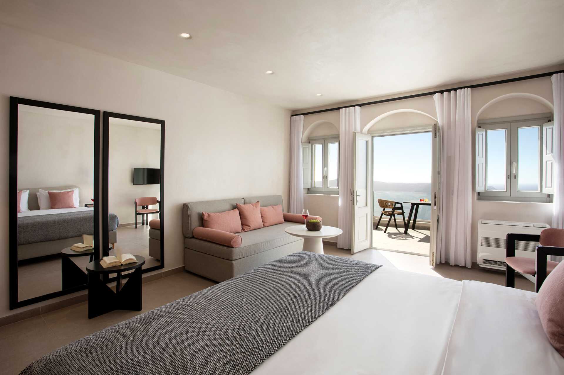 Suiter med balkon eller terrasse og havudsigt. På udepladsen er der en jacuzzi og solstole. Suiterne består af et soveværelse og et opholdsrum. En dobbeltseng. Mulighed for ekstra opredning i sovesofa. Gratis wifi, aircondition og deponering. Køleskab. El-kedel og kaffe/te. Tv med internationale kanaler. Hårtørrer. Badkar med bruser og toilet. Rengøring 7 gange om ugen. Børn under to år tæller med i det maksimale antal personer på værelset.