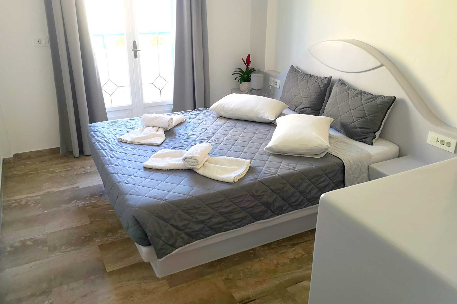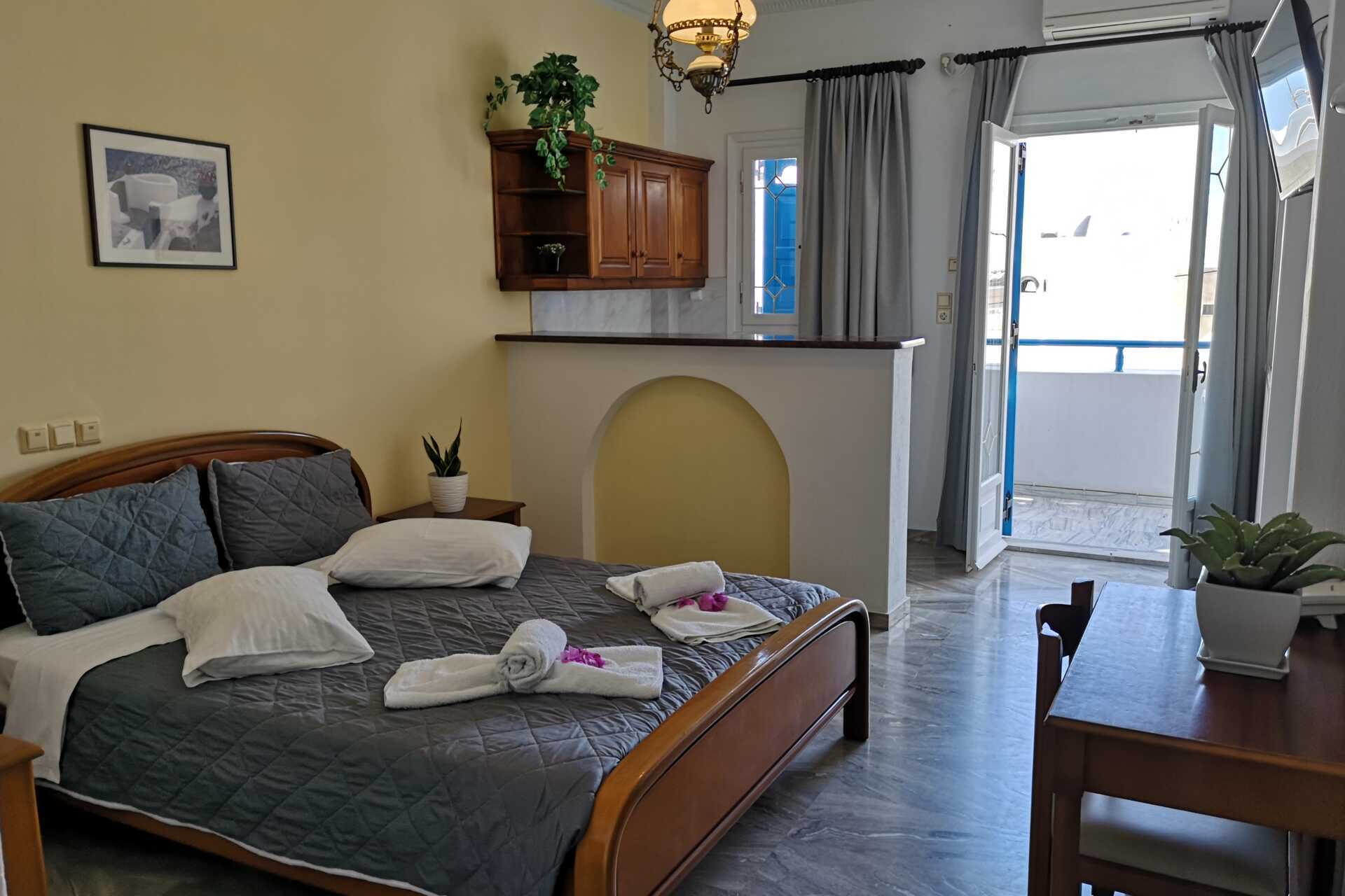 Større dobbeltværelse med balkon. En dobbeltseng. Gratis wifi, aircondition og deponering. Køleskab. Tv med internationale kanaler. Hårtørrer. Badeværelse med bruser og toilet. Rengøring 6 gange om ugen.