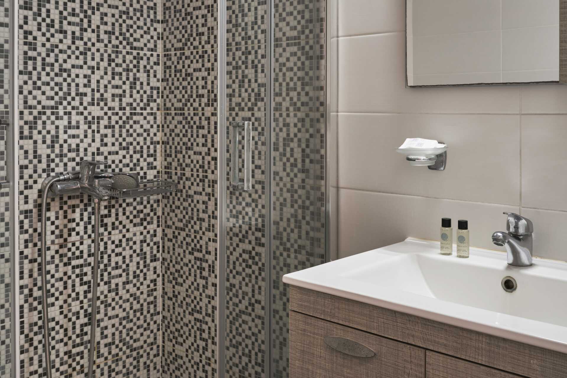 Dobbeltværelse med balkon eller terrasse. En dobbeltseng eller to enkeltsenge. Gratis wifi, aircondition og deponering. Køleskab. Kaffemaskine - kapsler medfølger ikke, eller el-kedel med kaffe og te. Tv med internationale kanaler. Hårtørrer. Badeværelse med bruser og toilet. Rengøring 7 gange om ugen.