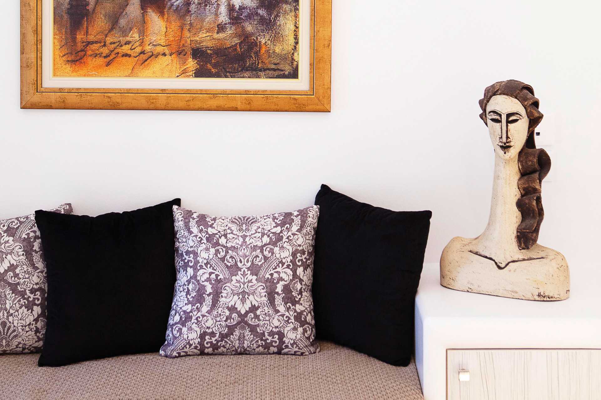 3-personers værelse med balkon og pooludsigt. Alle værelser har deres eget design. En dobbeltseng og en enkeltseng. Gratis wifi, aircondition og deponering. Køleskab. Tv med internationale kanaler. Hårtørrer. Badeværelse med bruser og toilet. Rengøring 7 gange om ugen.