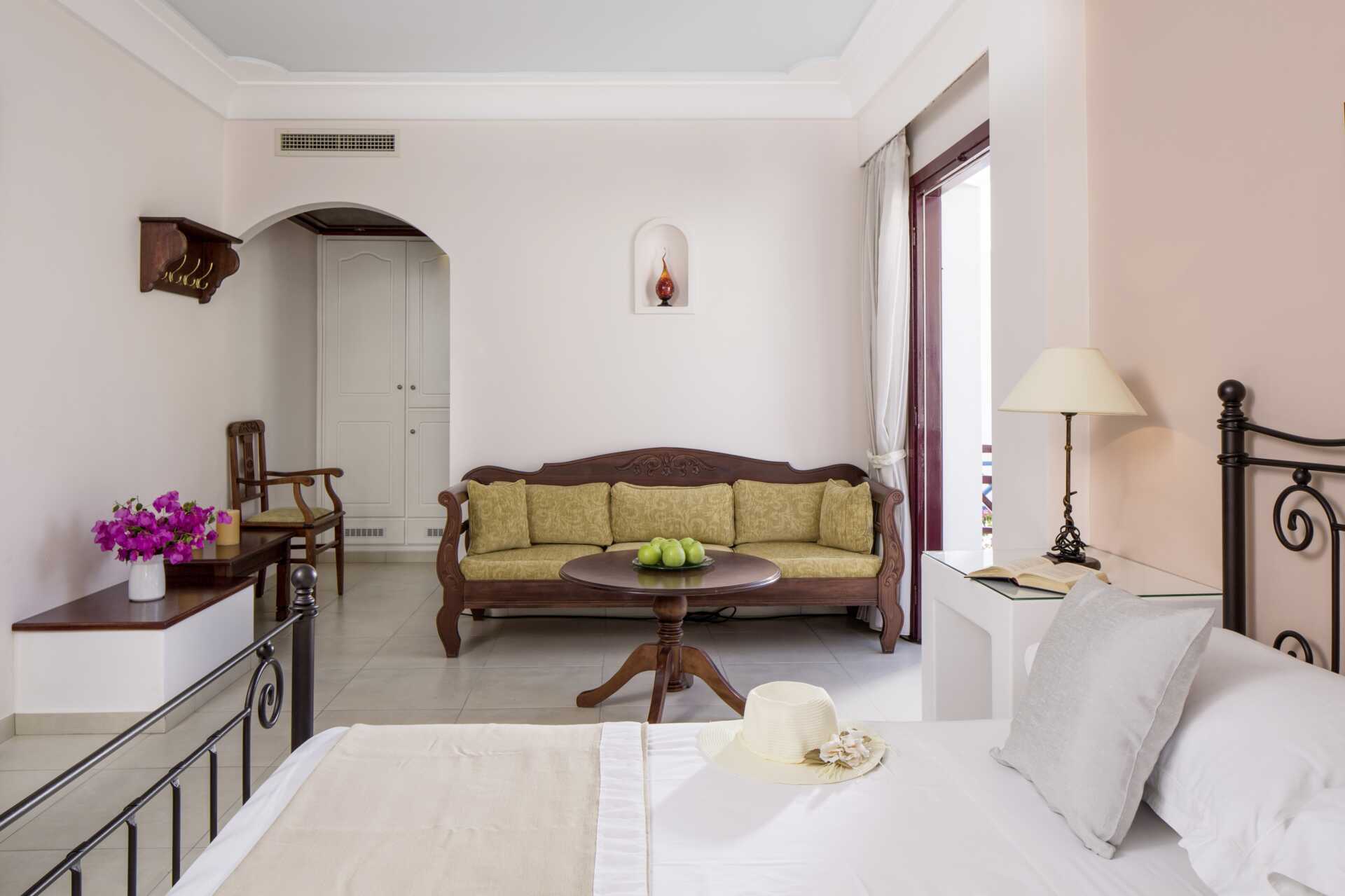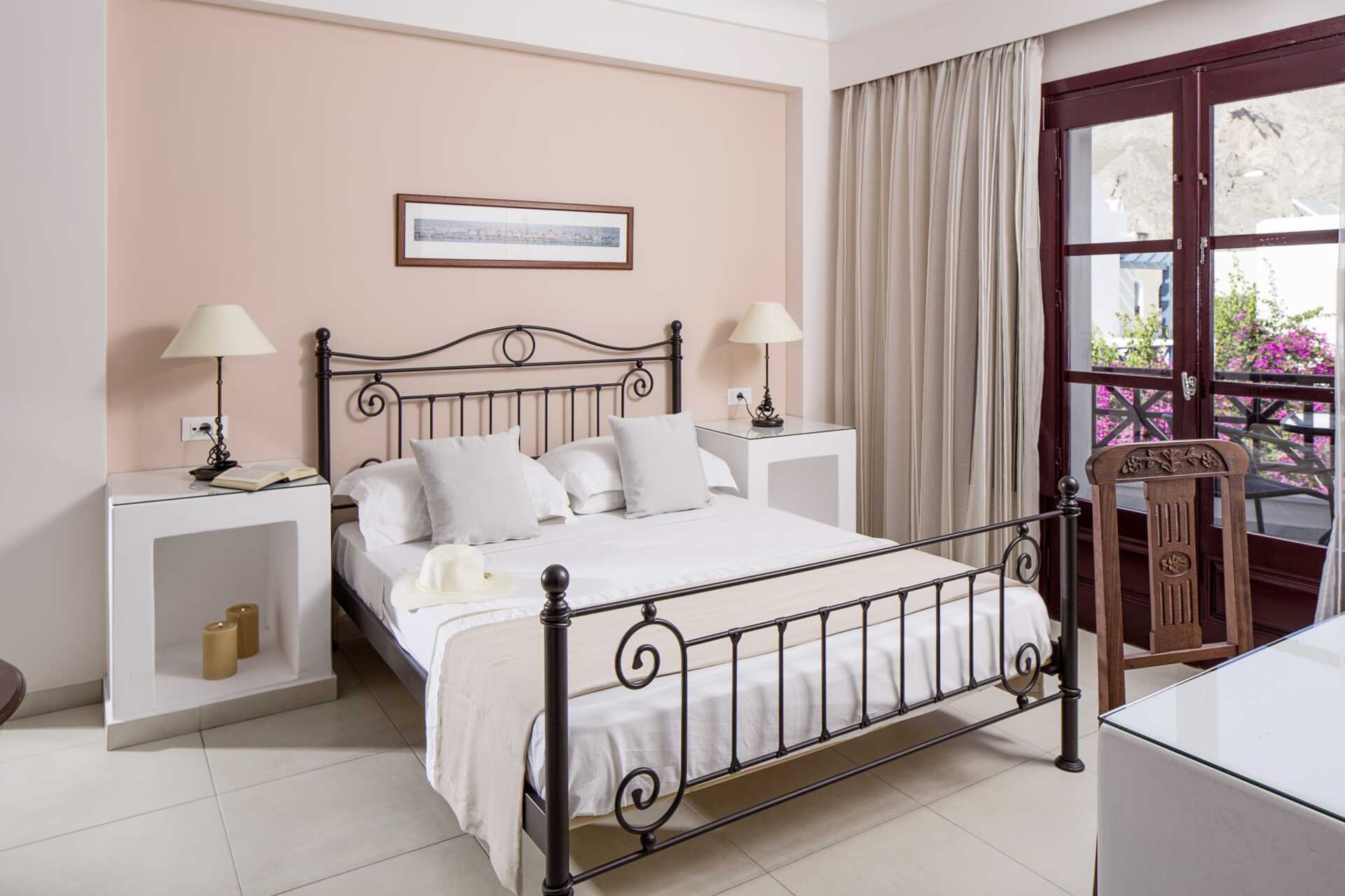 Dobbeltværelse med balkon eller terrasse. En dobbeltseng. Mulighed for ekstra opredning i sovesofa. Gratis wifi, aircondition og deponering. Køleskab. Tv med internationale kanaler. Hårtørrer. Badkar med bruser og toilet. Rengøring 7 gange om ugen. Børn under to år tæller med i det maksimale antal personer på værelset.
