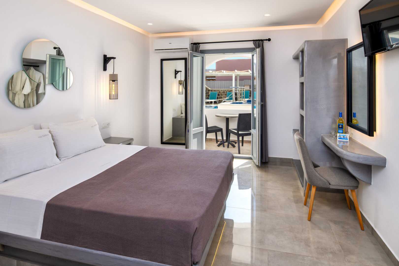 1-værelses lejlighed superior med balkon eller terrasse. Kombineret soveværelse og minikøkken. To enkeltsenge eller en dobbeltseng eller en dobbeltseng og en enkeltseng. Minikøkken med kogeplader, køleskab, el-kedel og enkelt køkkenudstyr. Gratis wifi, aircondition og deponering. Tv med internationale kanaler. Hårtørrer. Badeværelse med bruser og toilet. Rengøring 7 gange om ugen.