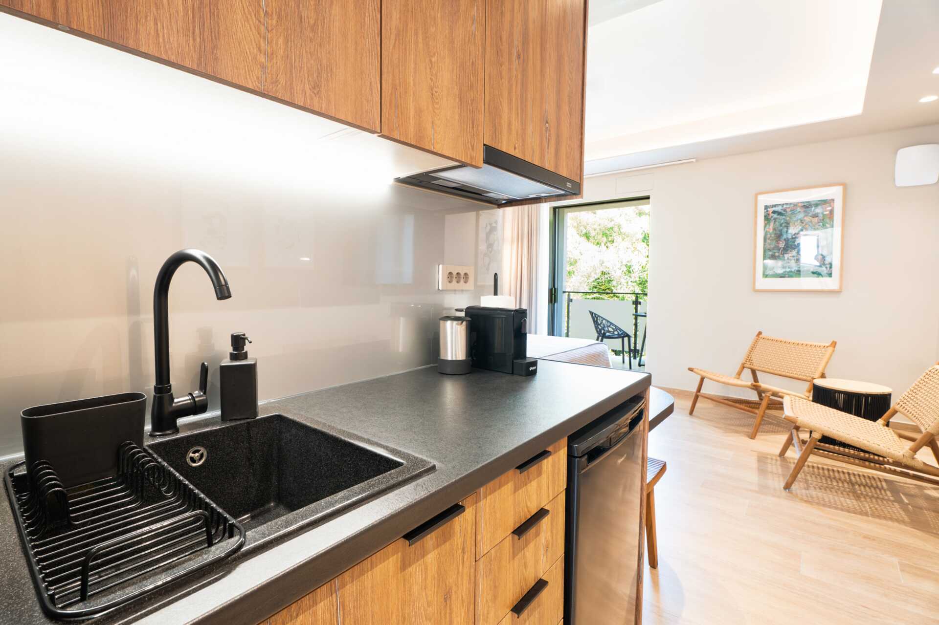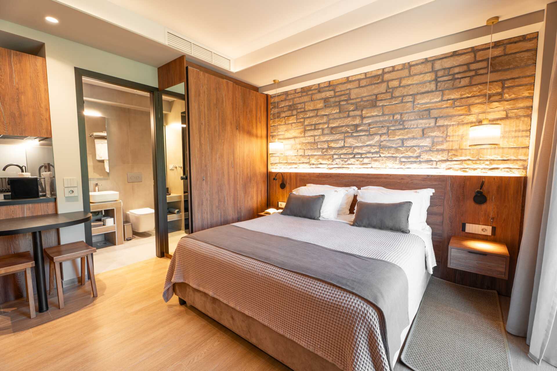 1-værelses lejligheder med balkon. Kombineret soveværelse og minikøkken. En dobbeltseng. Minikøkken med køleskab, kogeplader, espressomaskine, el-kedel og enkelt køkkenudstyr. Gratis wifi, aircondition og deponering. Tv med internationale kanaler. Strygejern og strygebræt. Hårtørrer. Badeværelse med bruser og toilet. Rengøring 5 gange om ugen. Børn under to år tæller med i det maksimale antal personer på værelset.