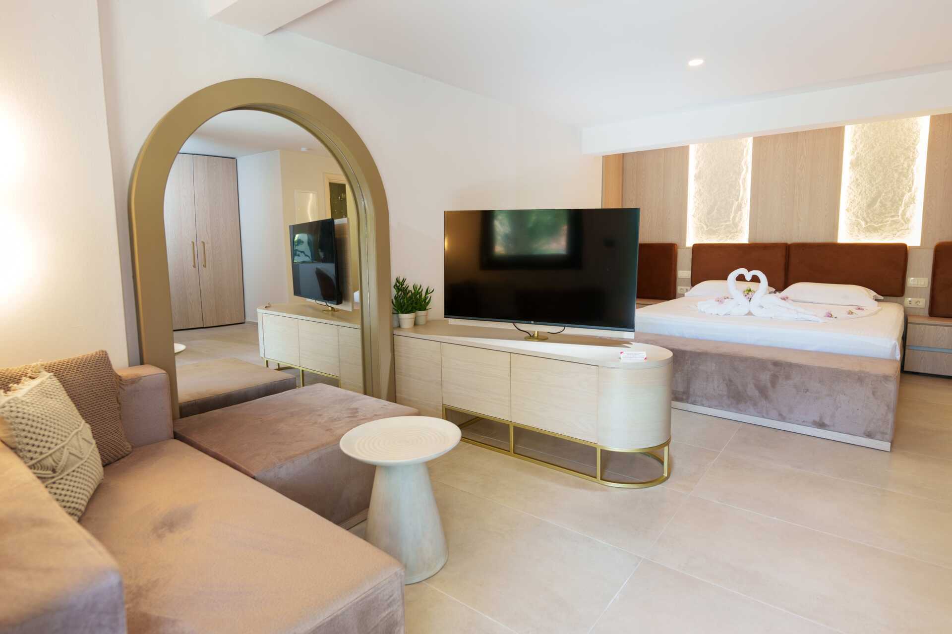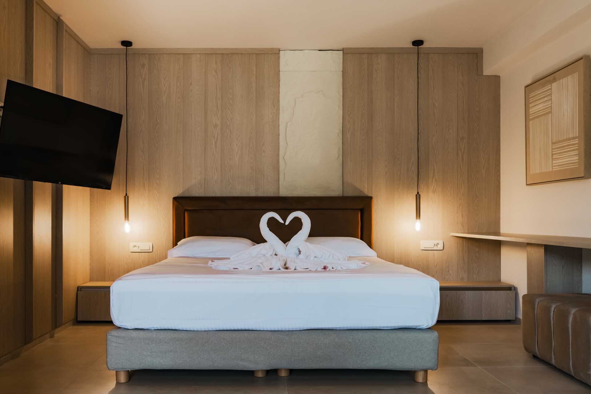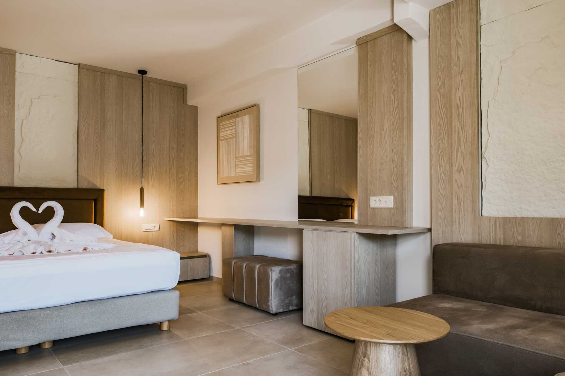 Superior-værelse med balkon eller terrasse i stueplan, nogle med delvis havudsigt. Nogle balkoner har havudsigt. En dobbeltseng. I nogle værelser er der mulighed for en ekstra opredning i en enkeltseng eller på en sovesofa. Gratis wifi, aircondition og deponering. Køleskab. Tv med internationale kanaler. Hårtørrer. Badeværelse med bruser og toilet. Rengøring 5 gange om ugen.