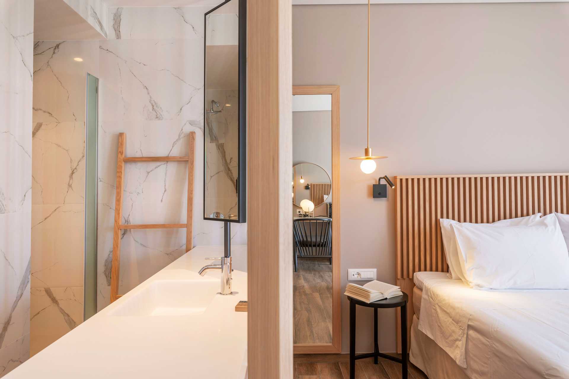 Dobbeltværelser med balkon mod havet. Sovekomforten er høj med komfortabel dobbeltseng og sengetøj fra CocoMat. Gratis wifi, deponering og aircondition. Kaffemaskine, kapsler ved ankomst og derefter mod betaling. Køleskab. Tv med internationale kanaler. Bluetooth højtalere kan lånes i receptionen mod depositum. Hårtørrer. Badeværelse med bruser og toilet. Rengøring 7 gange om ugen.