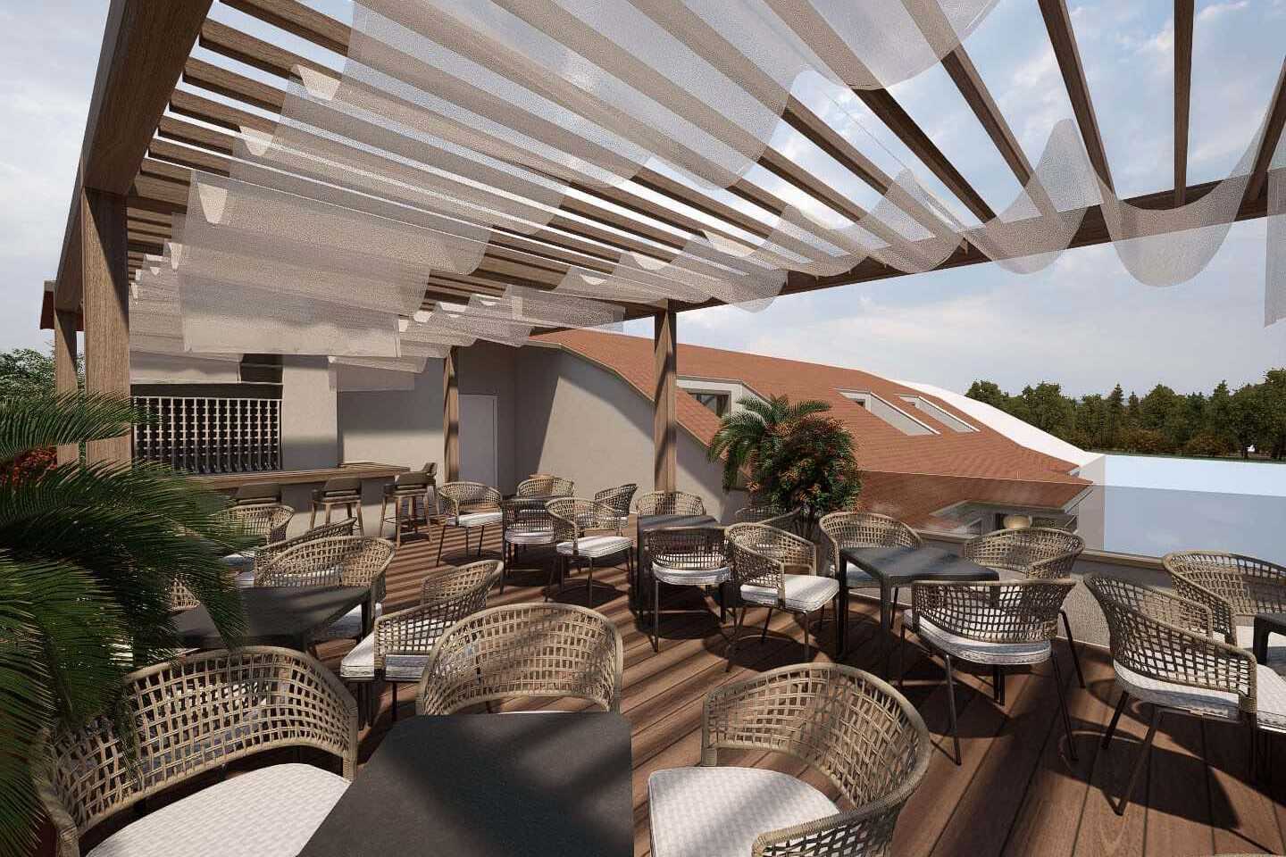 Dobbeltværelse med balkon. En dobbeltseng eller to enkeltsenge. Gratis wifi, aircondition og deponering. Tv. Lille køleskab. Badekar/bruser og toilet. Rengøring 6 gange om ugen.